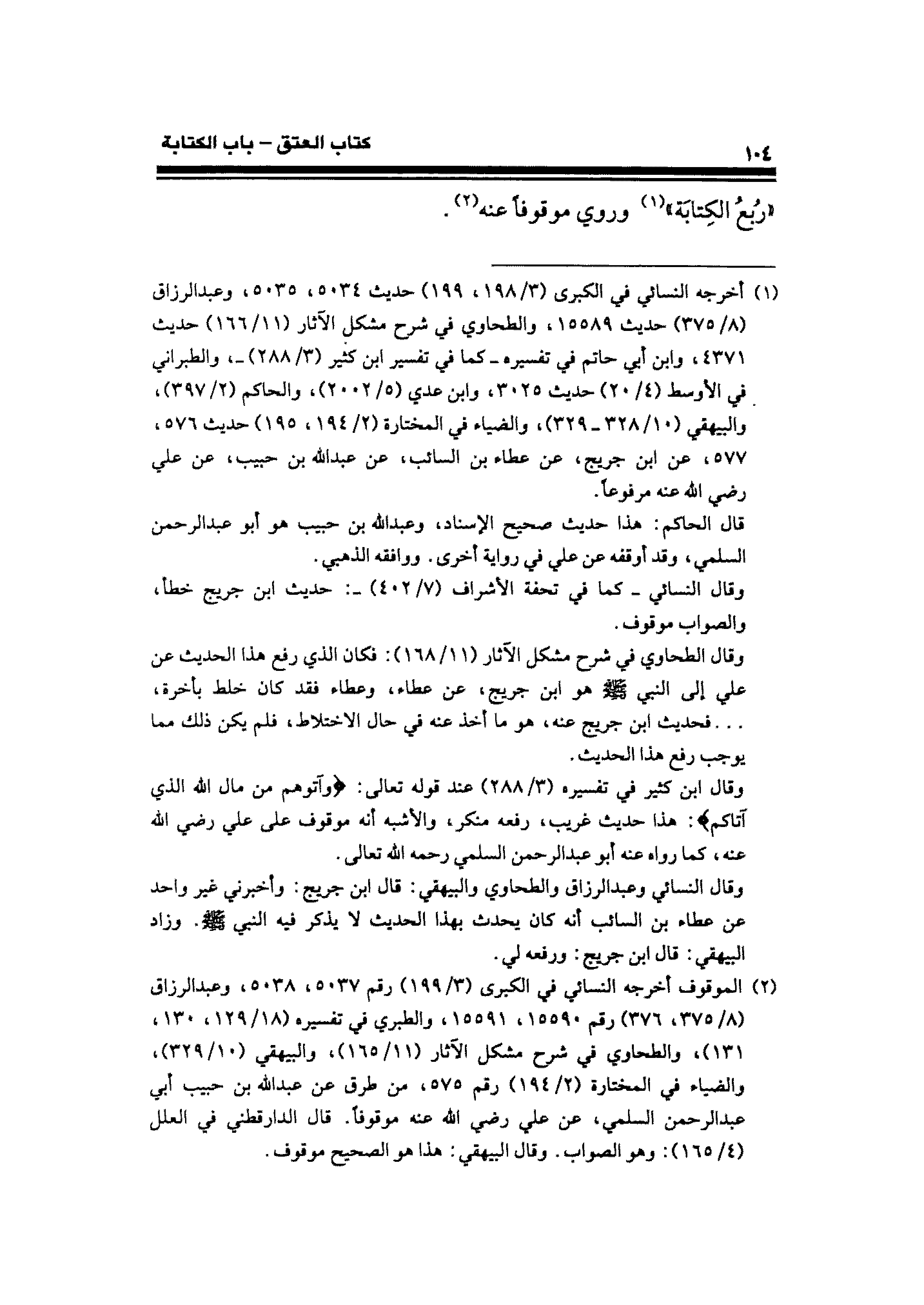 "رُبعُ الكِتابَة" (¬١) وروي موقوفًا عنه (¬٢).