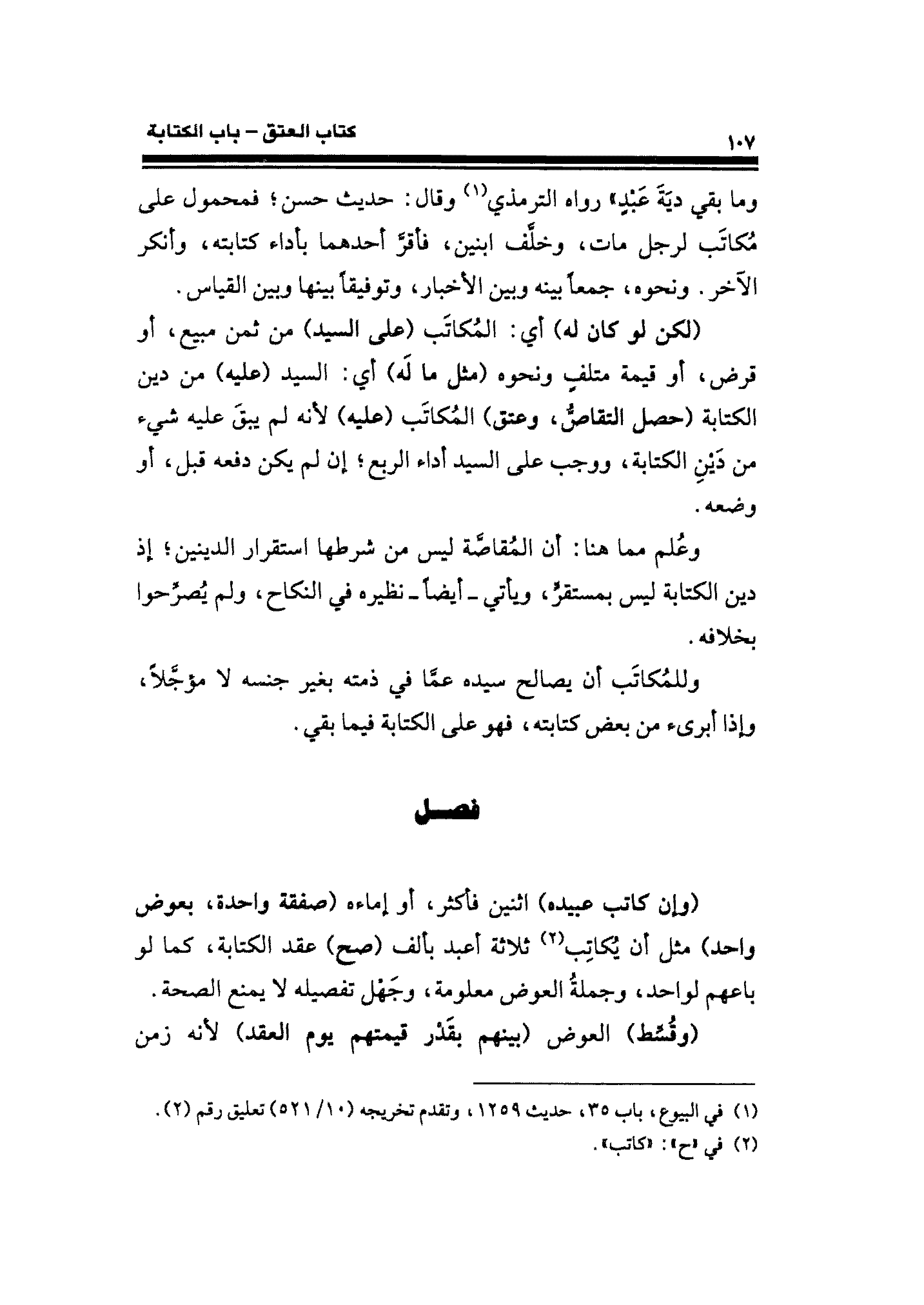وما بقي ديَةَ عَبْدٍ" رواه الترمذي (¬١) وقال: حديث حسن؛ فمحمول على مُكاتَب لرجل مات، وخلَّف ابنين، فأقرَّ أحدهما بأداء كتابته، وأنكر الآخر. ونحوه، جمعًا بينه وبين الأخبار، وتوفيقًا بينها وبين القياس.
