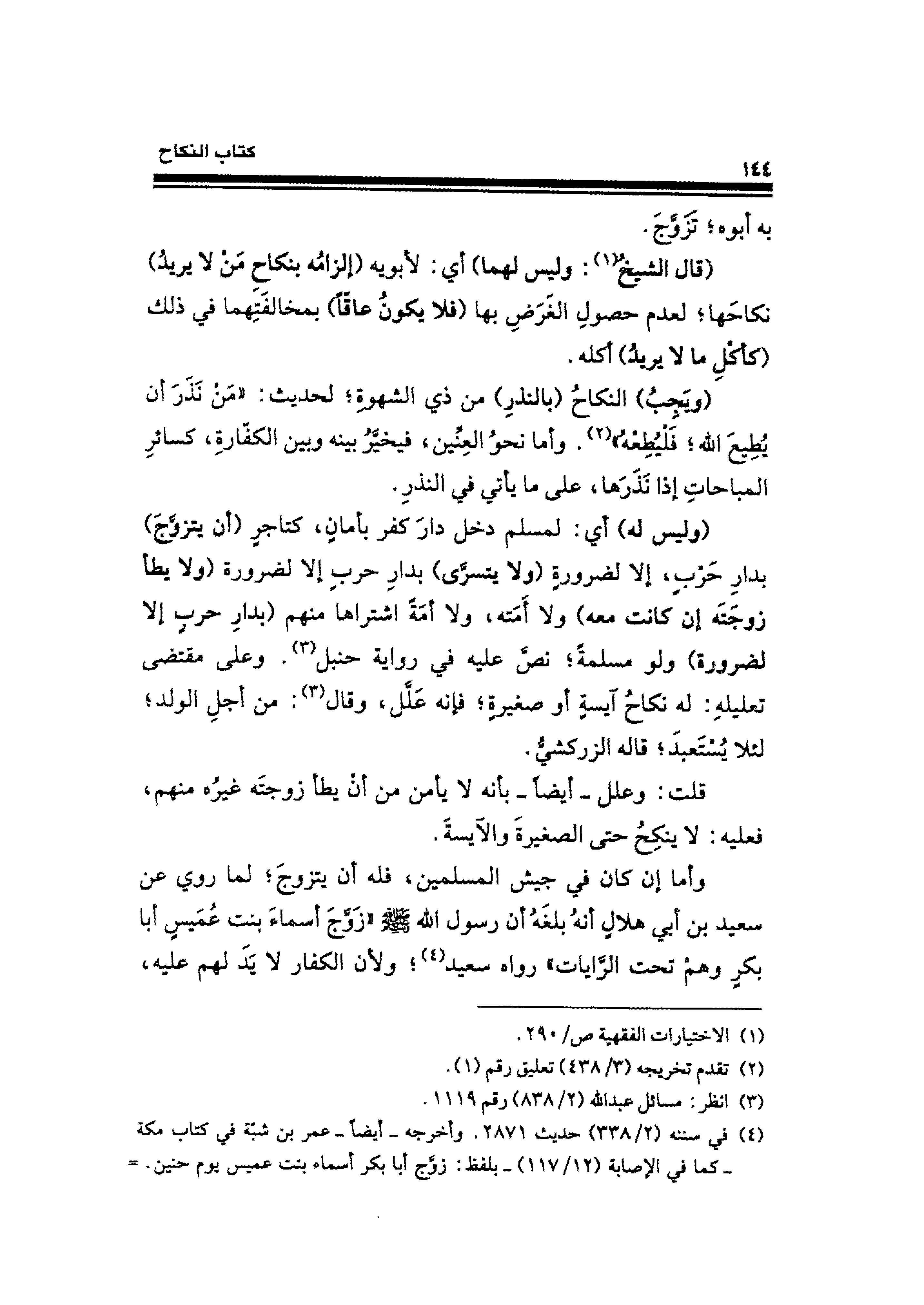 (¬١) الاختيارات الفقهية ص / ٢٩٠.