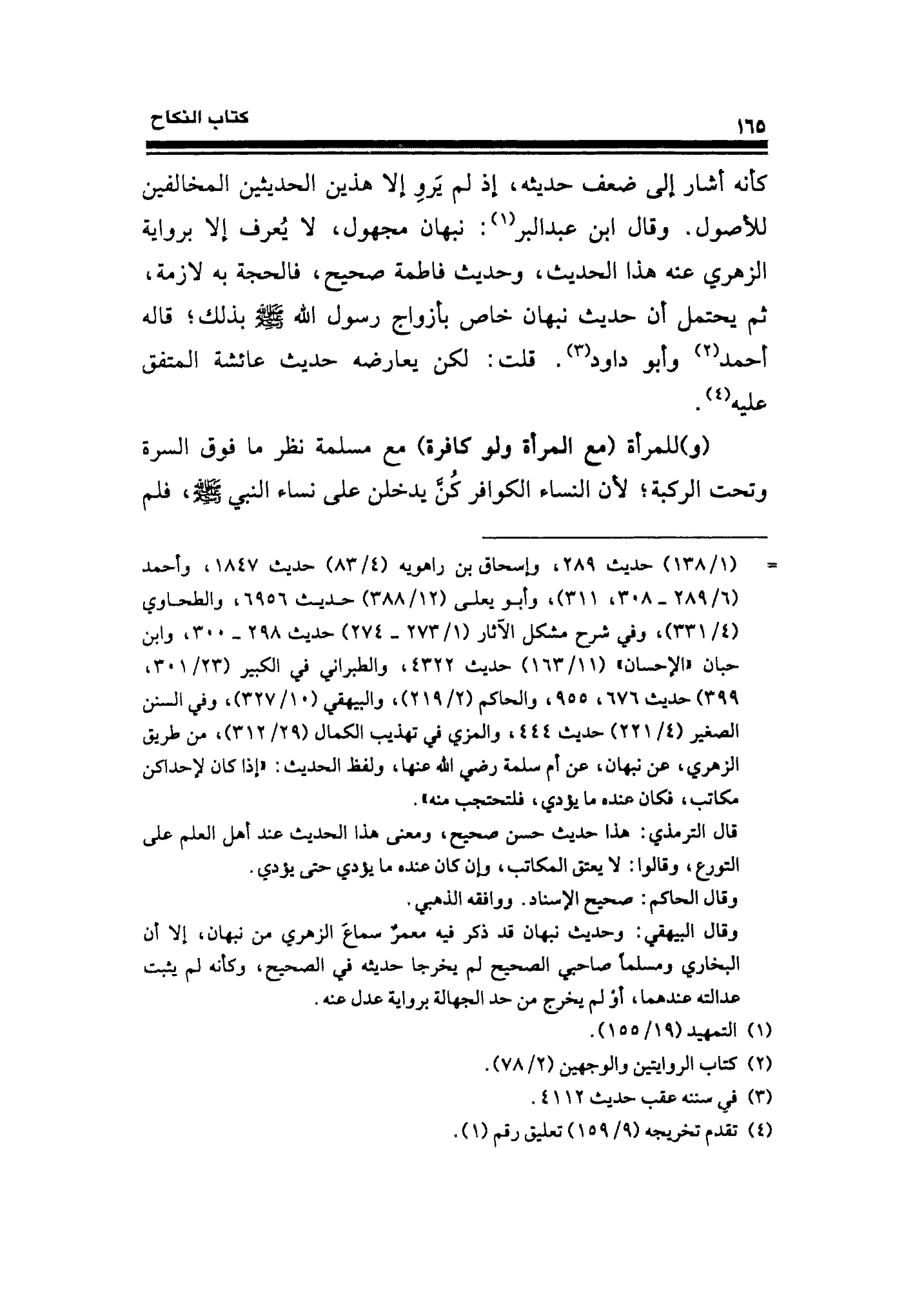 وقال البيهقي: وحديث نبهان قد ذكر فيه معمرٌ سماعَ الزهري من نبهان، إلا أن البخاري ومسلمًا صاحبي الصحيح لم يخرجا حديثه في الصحيح، وكأنه لم يثبت عدالته عندهما، أو لم يخرج من حد الجهالة برواية عدل عنه.