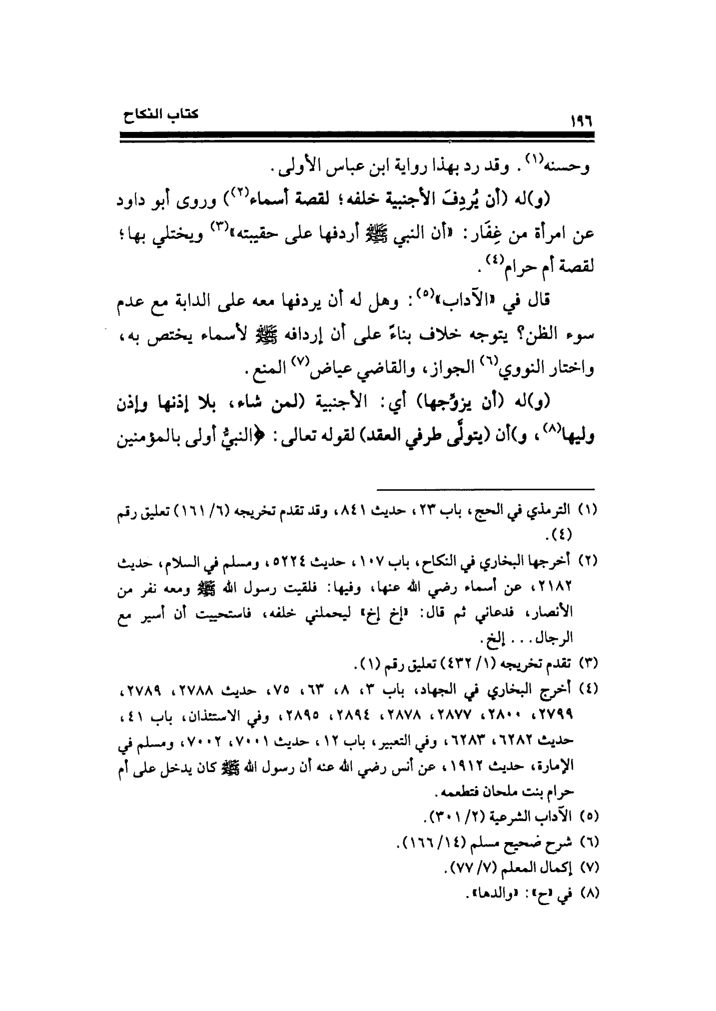 (¬١) الترمذي في الحج، باب ٢٣، حديث ٨٤١، وقد تقدم تخريجه (٦/ ١٦١) تعليق رقم (٤).