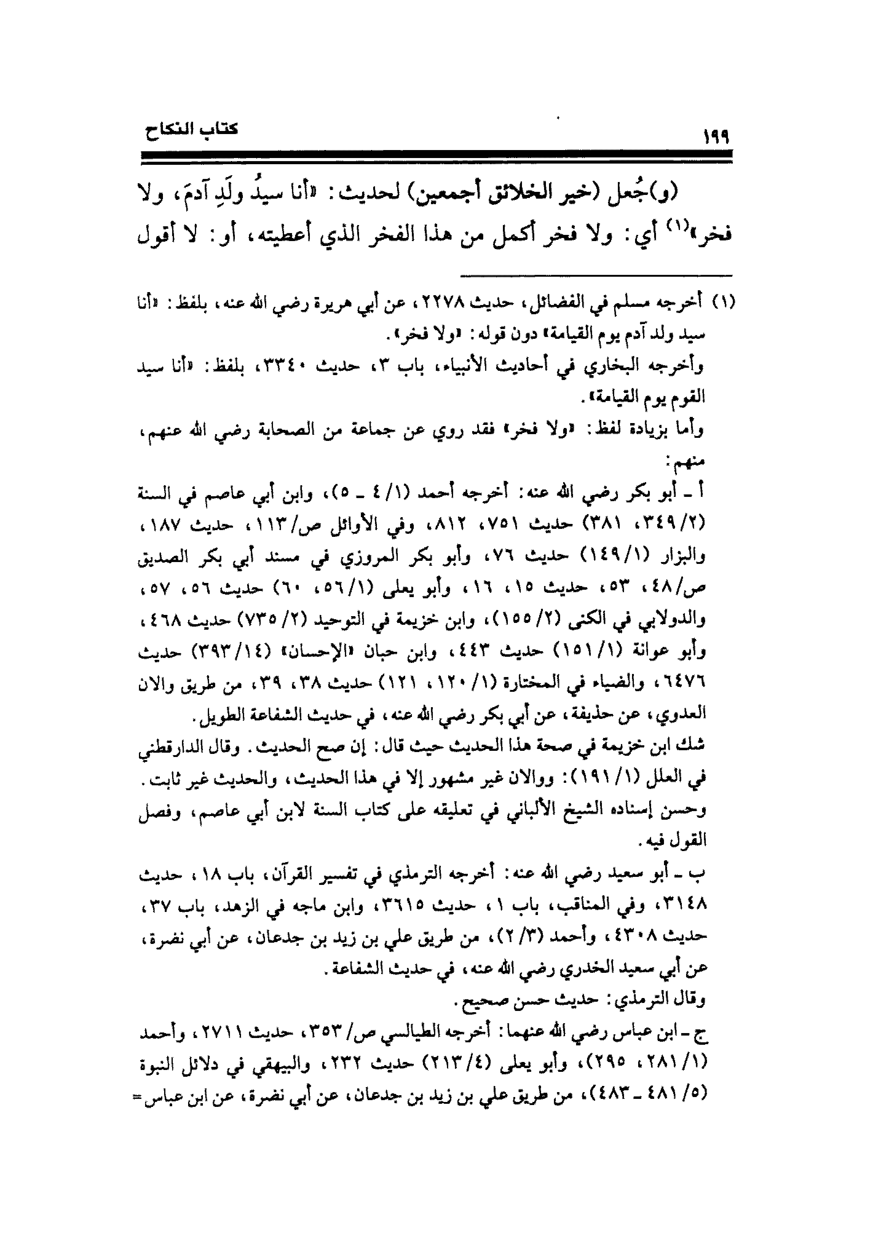 (¬١) أخرجه مسلم في الفضائل، حديث ٢٢٧٨، عن أبي هريرة - رضي الله عنه -، بلفظ: "أنا سيد ولد آدم يوم القيامة" دون قوله: "ولا فخر".