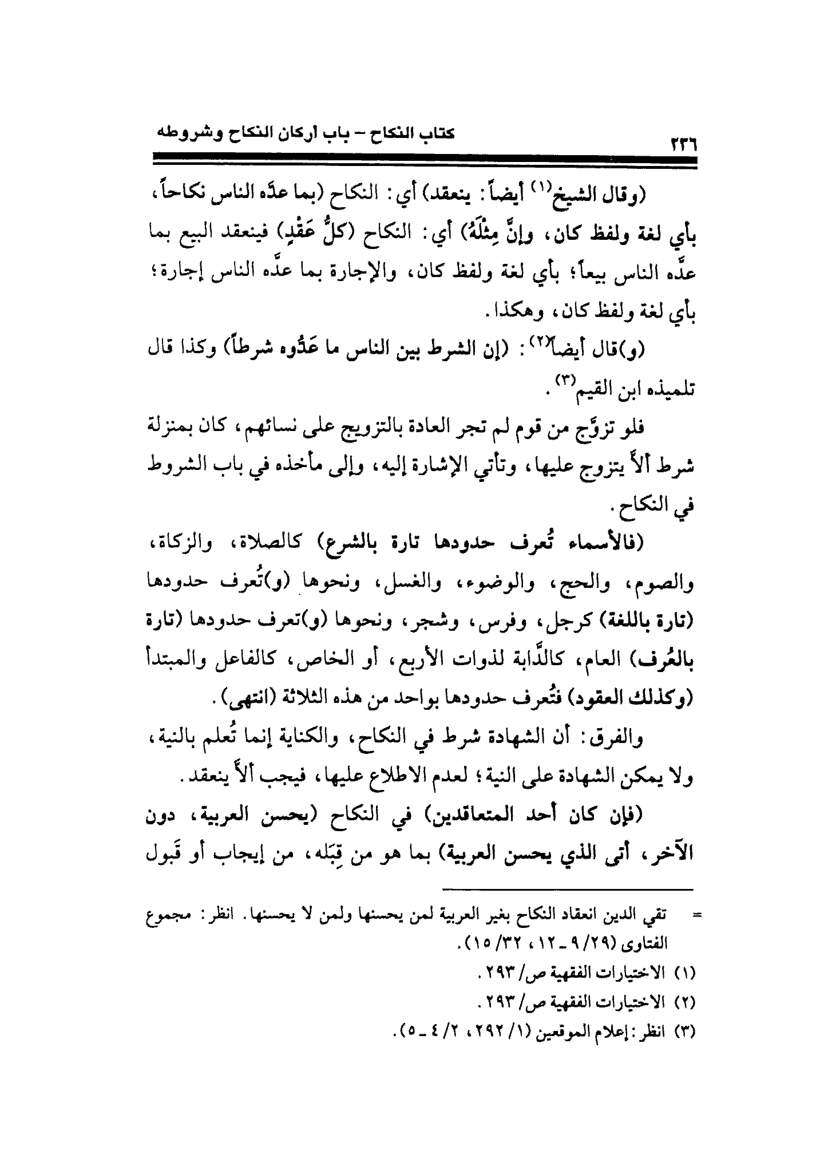 = تقي الدين انعقاد النكاح بغير العربية لمن يحسنها ولمن لا يحسنها. انظر: مجموع الفتاوى (٩/ ٢٩ - ١٢، ٣٢/ ١٥).