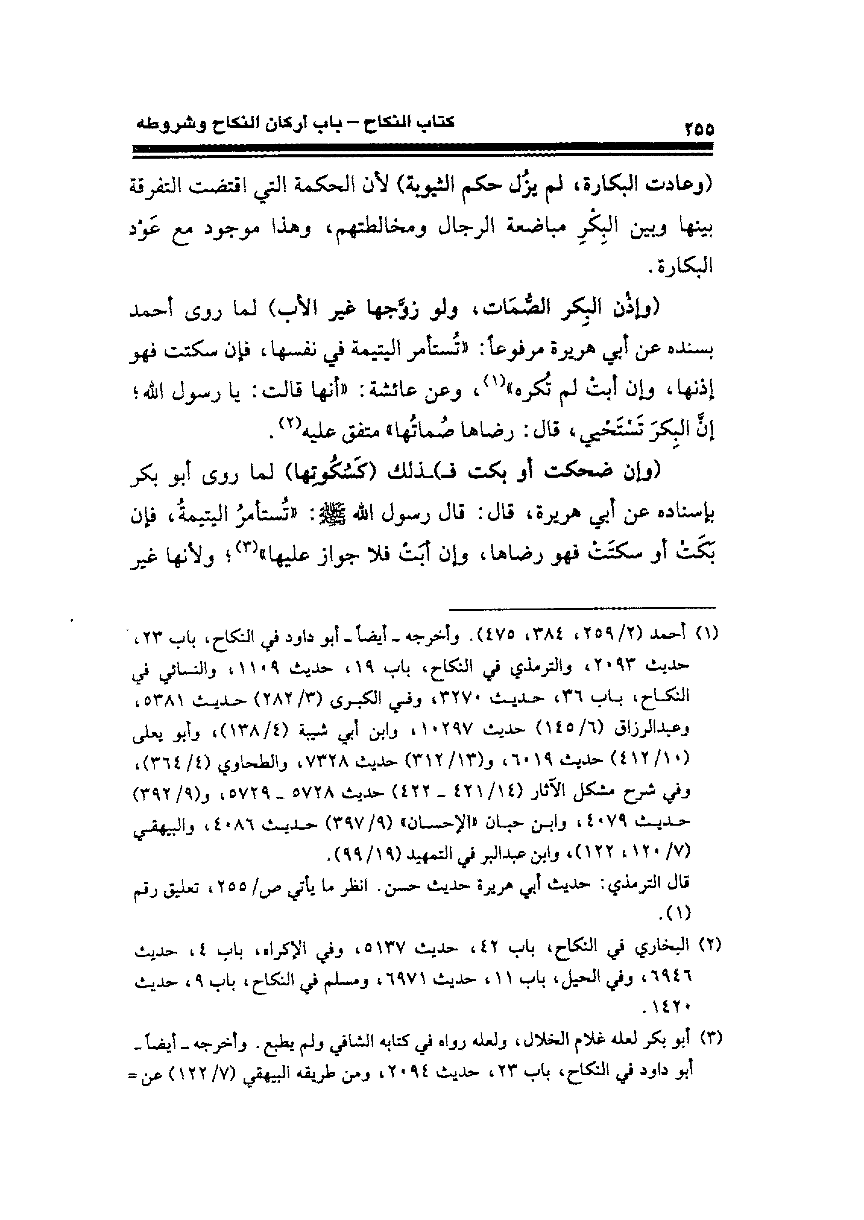 (¬٣) أبو بكر لعله غلام المخلال، ولعله رواه في كتابه الشافي ولم يطبع. وأخرجه -أيضًا- أبو داود في النكاح، باب ٢٣، حديث ٢٠٩٤، ومن طريقه البيهقي (٧/ ١٢٢) عن =