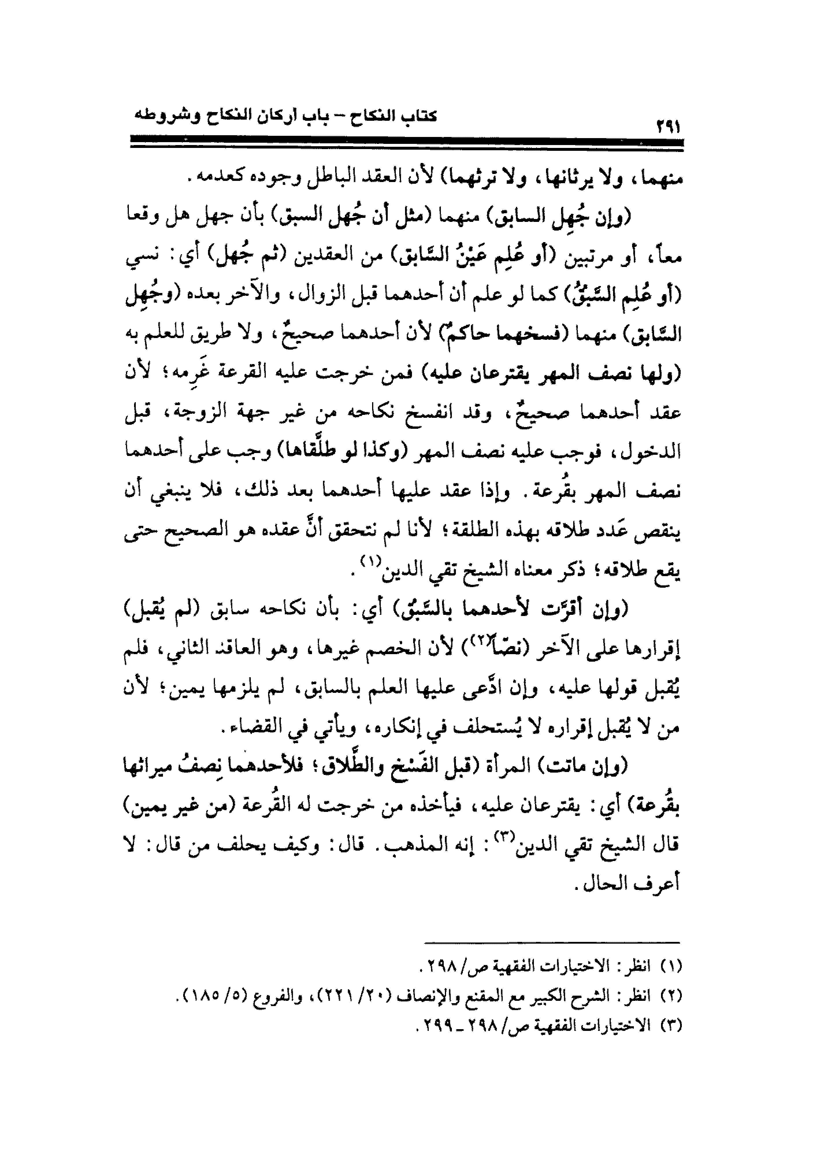 (¬٣) الاختيارات الفقهية ص/ ٢٩٨ - ٢٩٩.