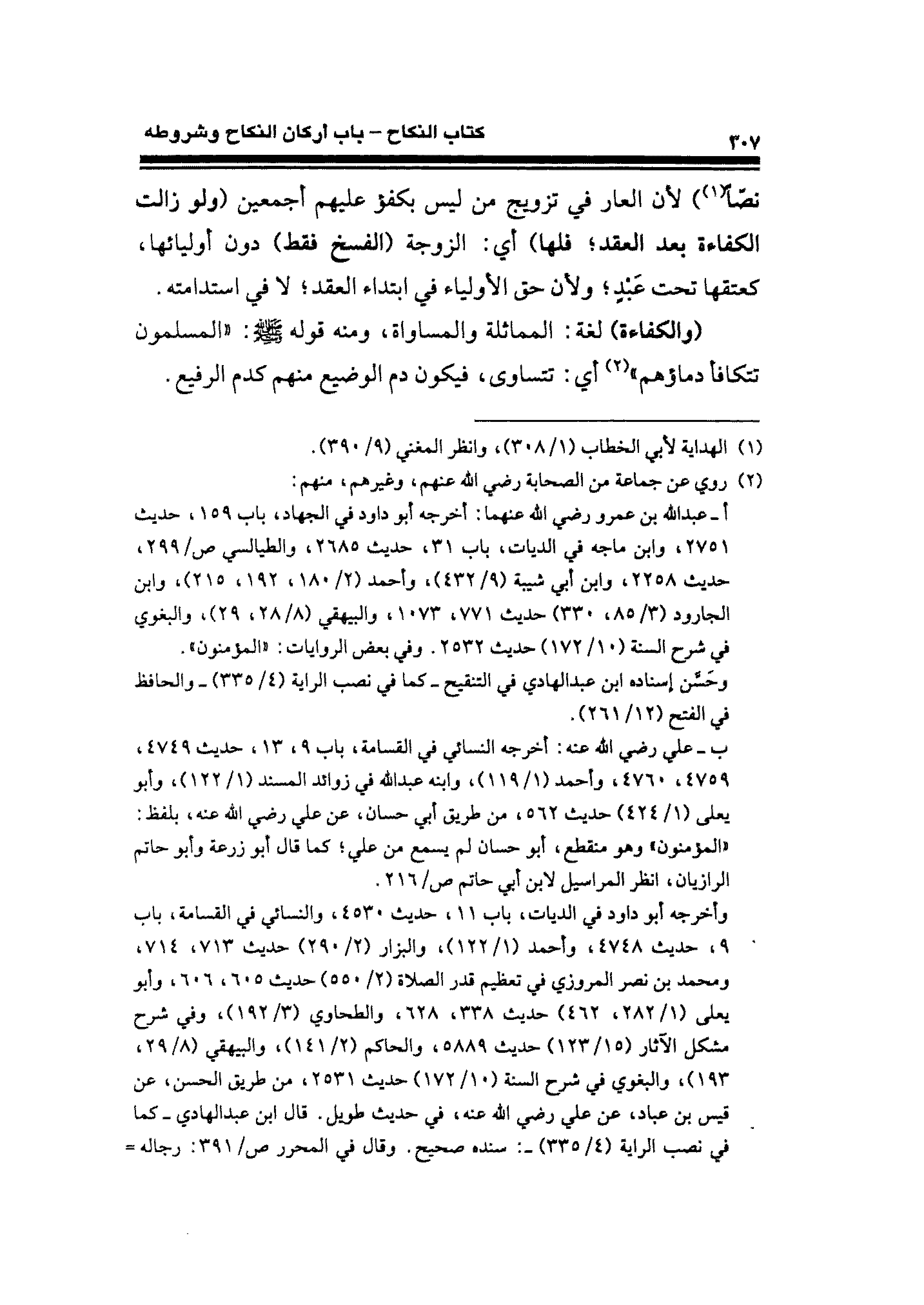 (¬١) الهداية لأبي الخطاب (١/ ٣٠٨)، وانظر المغنى (٩/ ٣٩٠).