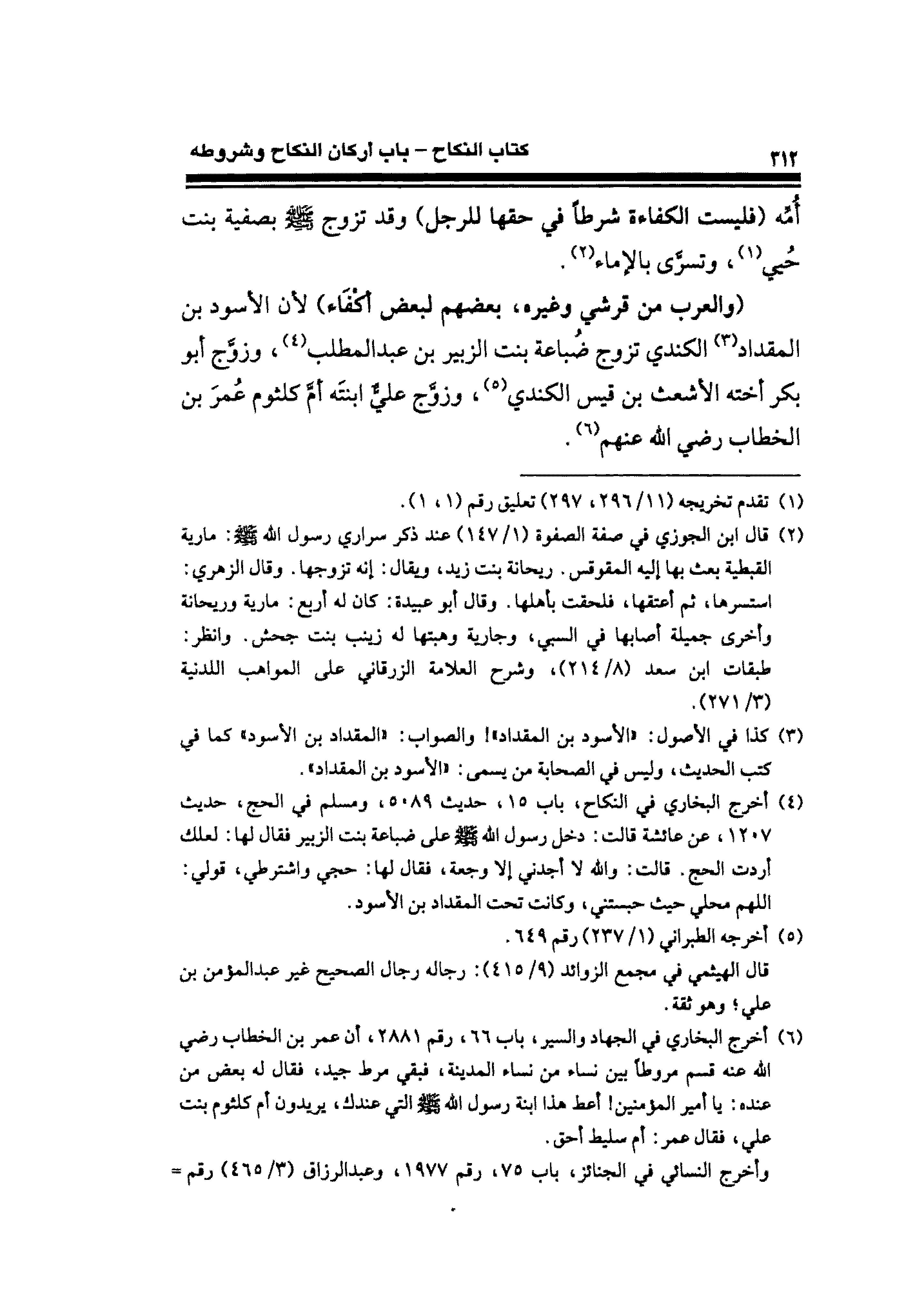 (¬٤) أخرج البخاري في النكاح، باب ١٥، حديث ٥٠٨٩، ومسلم في الحج، حديث ١٢٠٧، عن عائشة قالت: دخل رسول الله - صلى الله عليه وسلم - على ضباعة بنت الزبير فقال لها: لعلك أردت الحج. قالت: والله لا أجدني إلا وجعة، فقال لها: حجي واشترطي، قولي: اللهم محلي حيث حبستني، وكانت تحت المقداد بن الأسود.