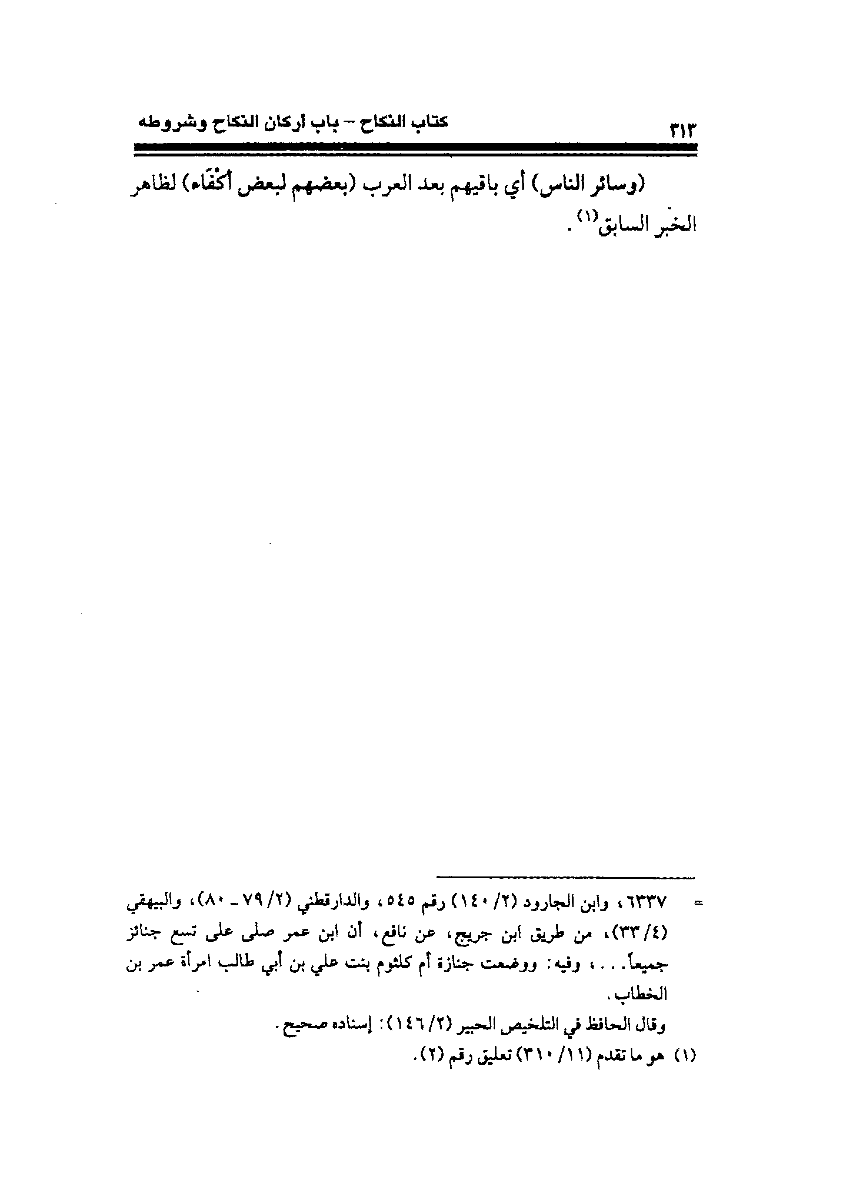 = ٦٣٣٧، وابن الجارود (٢/ ١٤٠) رقم ٥٤٥، والدارقطني (٢/ ٧٩ - ٨٠)، والبيهقي (٤/ ٣٣)، من طريق ابن جريج، عن نافع، أن ابن عمر صلى على تسع جنائز جميعًا ... ، وفيه: ووضعت جنازة أم كلثوم بنت علي بن أبي طالب امرأة عمر بن الخطاب.