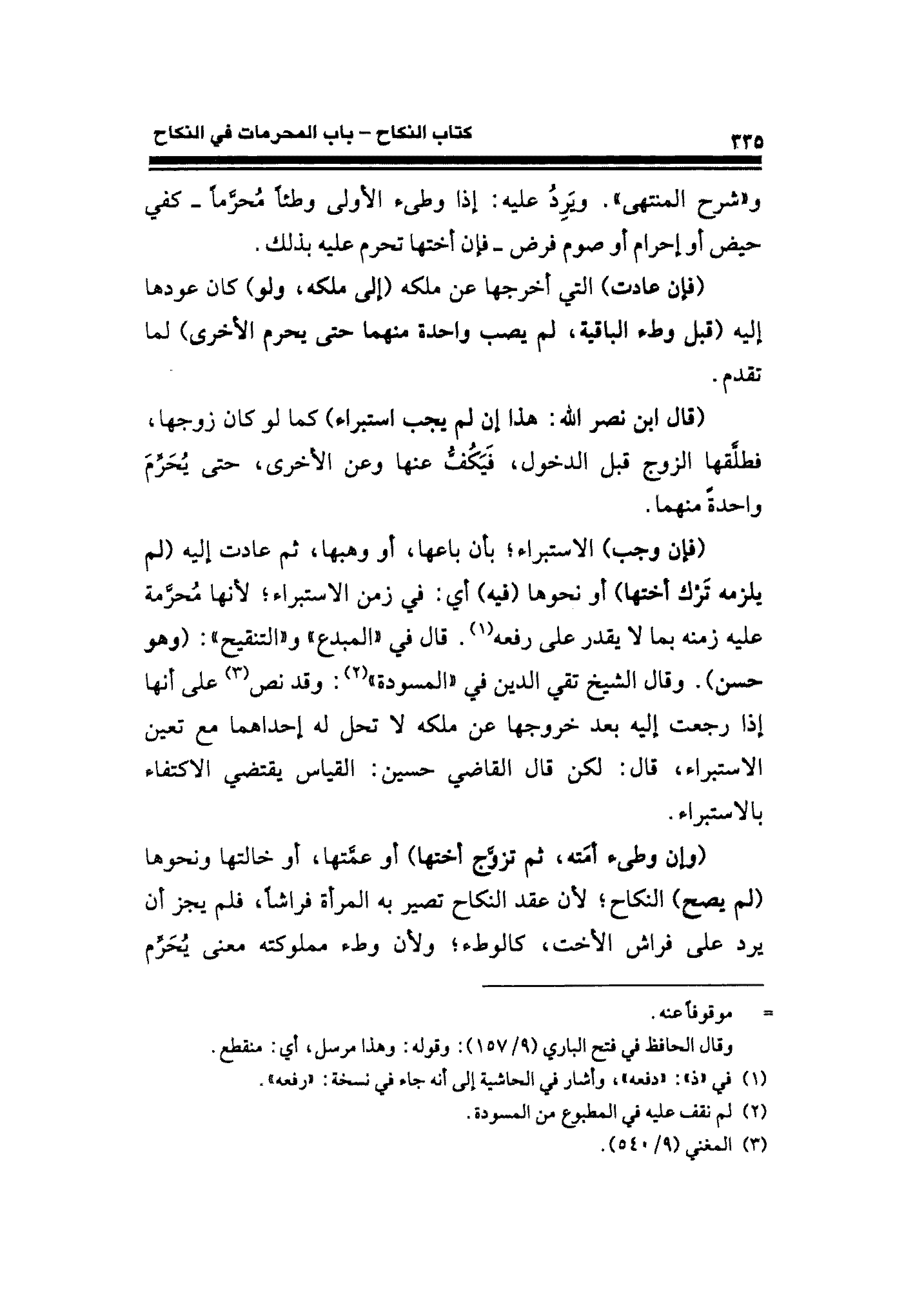 و "شرح المنتهى". ويَرِدُ عليه: إذا وطئ الأولى وطئَا مُحرَّمًا -كفي حيض أو إحرام أو صوم فرض- فإن أختها تحرم عليه بذلك.