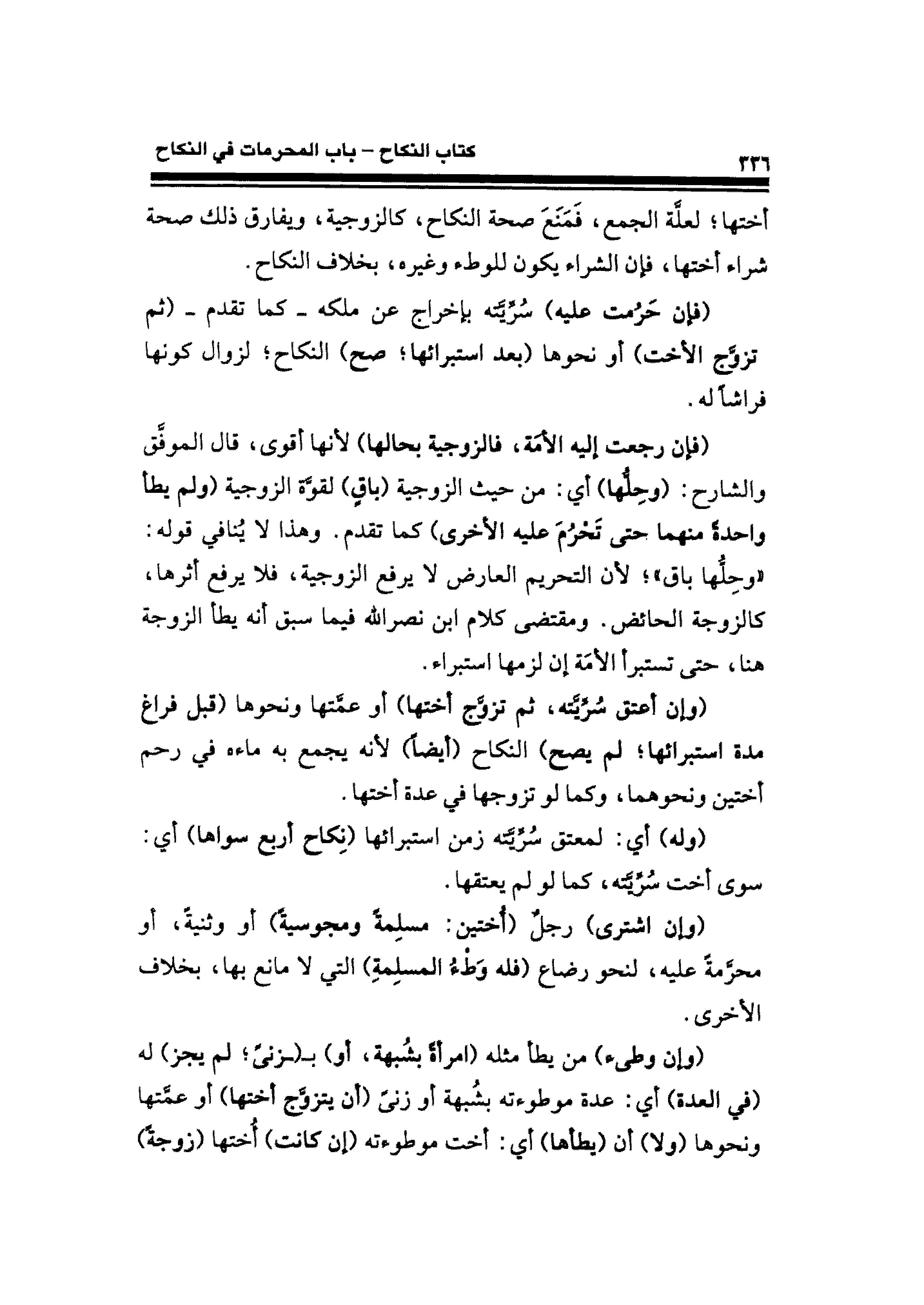(فإن حَرُمت عليه) سُرِّيَّته بإخراج عن ملكه -كما تقدم- (ثم تزوَّج الأخت) أو نحوها (بعد استبرائها؛ صح) النكاح؛ لزوال كونها فراشًا له.