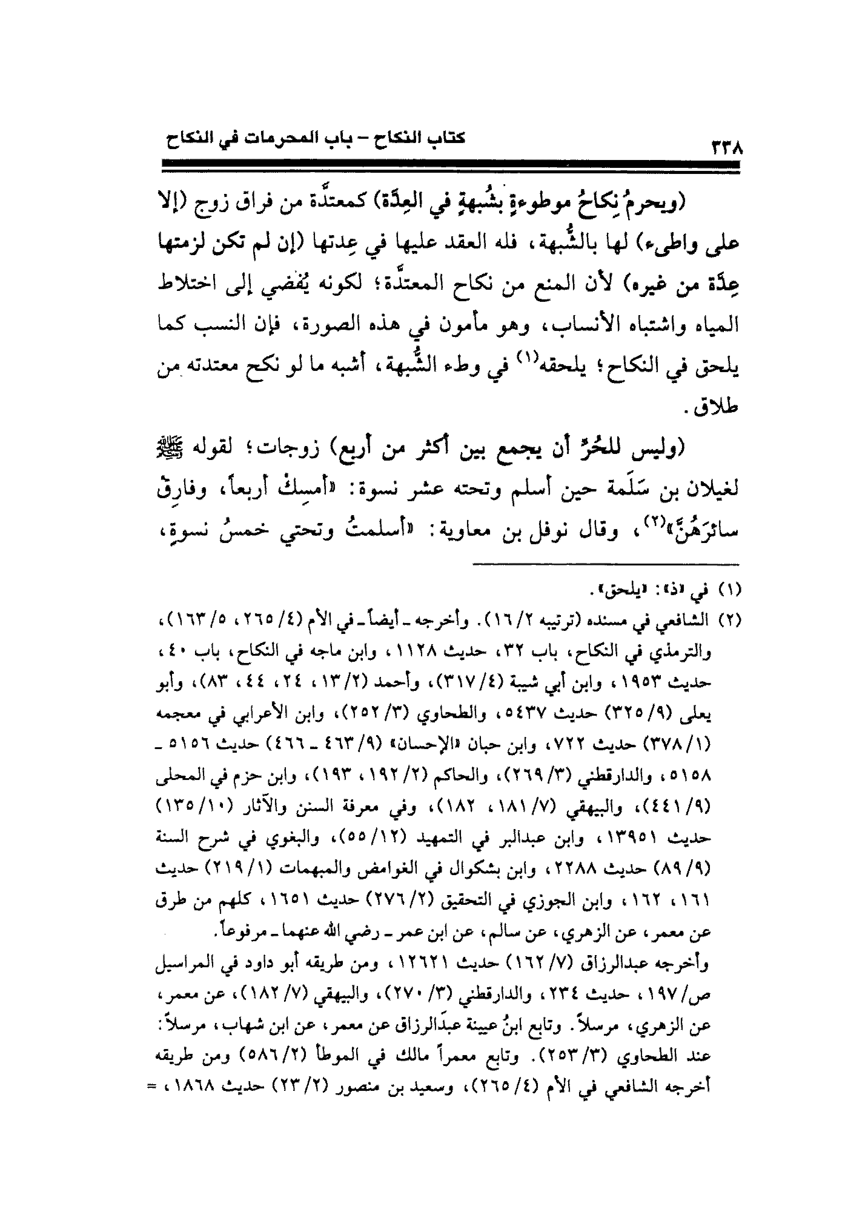 (¬٢) الشافعي في مسنده (ترتيبه ٢/ ١٦). وأخرجه -أيضًا - في الأم (٤/ ٢٦٥، ٥/ ١٦٣)، والترمذي في النكاح، باب ٣٢، حديث ١١٢٨، وابن ماجه في النكاح، باب ٤٠، حديث ١٩٥٣، وابن أبي شيبة (٤/ ٣١٧)، وأحمد (٢/ ١٣، ٢٤، ٤٤، ٨٣)، وأبو يعلى (٩/ ٣٢٥) حديث ٥٤٣٧، والطحاوي (٣/ ٢٥٢)، وابن الأعرابى في معجمه (١/ ٣٧٨) حديث ٧٢٢، وابن حبان "الإحسان" (٩/ ٤٦٣ - ٤٦٦) حديث ٥١٥٦ - ٥١٥٨، والدارقطني (٣/ ٢٦٩)، والحاكم (٢/ ١٩٢، ١٩٣)، وابن حزم في المحلى (٩/ ٤٤١)، والبيهقي (٧/ ١٨١، ١٨٢)، وفي معرفة السنن والآثار (١٠/ ١٣٥) حديث ١٣٩٥١، وابن عبد البر في التمهيد (١٢/ ٥٥)، والبغوي في شرح السنة (٩/ ٨٩) حديث ٢٢٨٨، وابن بشكوال في الغوامض والمبهمات (١/ ٢١٩) حديث ١٦١، ١٦٢، وابن الجوزي في التحقيق (٢/ ٢٧٦) حديث ١٦٥١، كلهم من طرق عن معمر، عن الزهري، عن سالم ابن عمر - رضي الله عنهما- مرفوعًا.