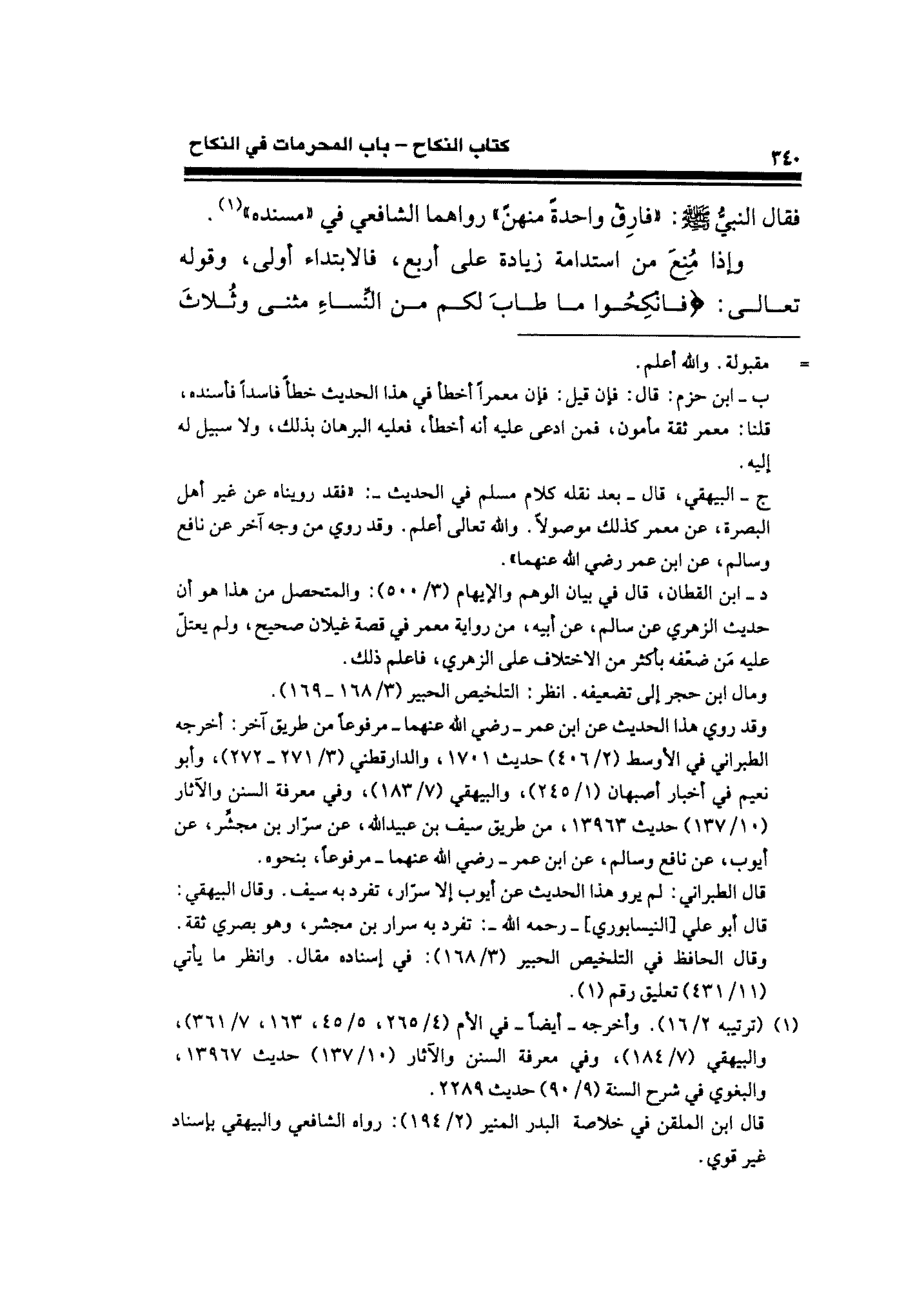 فقال النبيُّ - صلى الله عليه وسلم -: "فارِقْ واحدةً منهنً" رواهما الشافعي في "مسنده" (¬١).