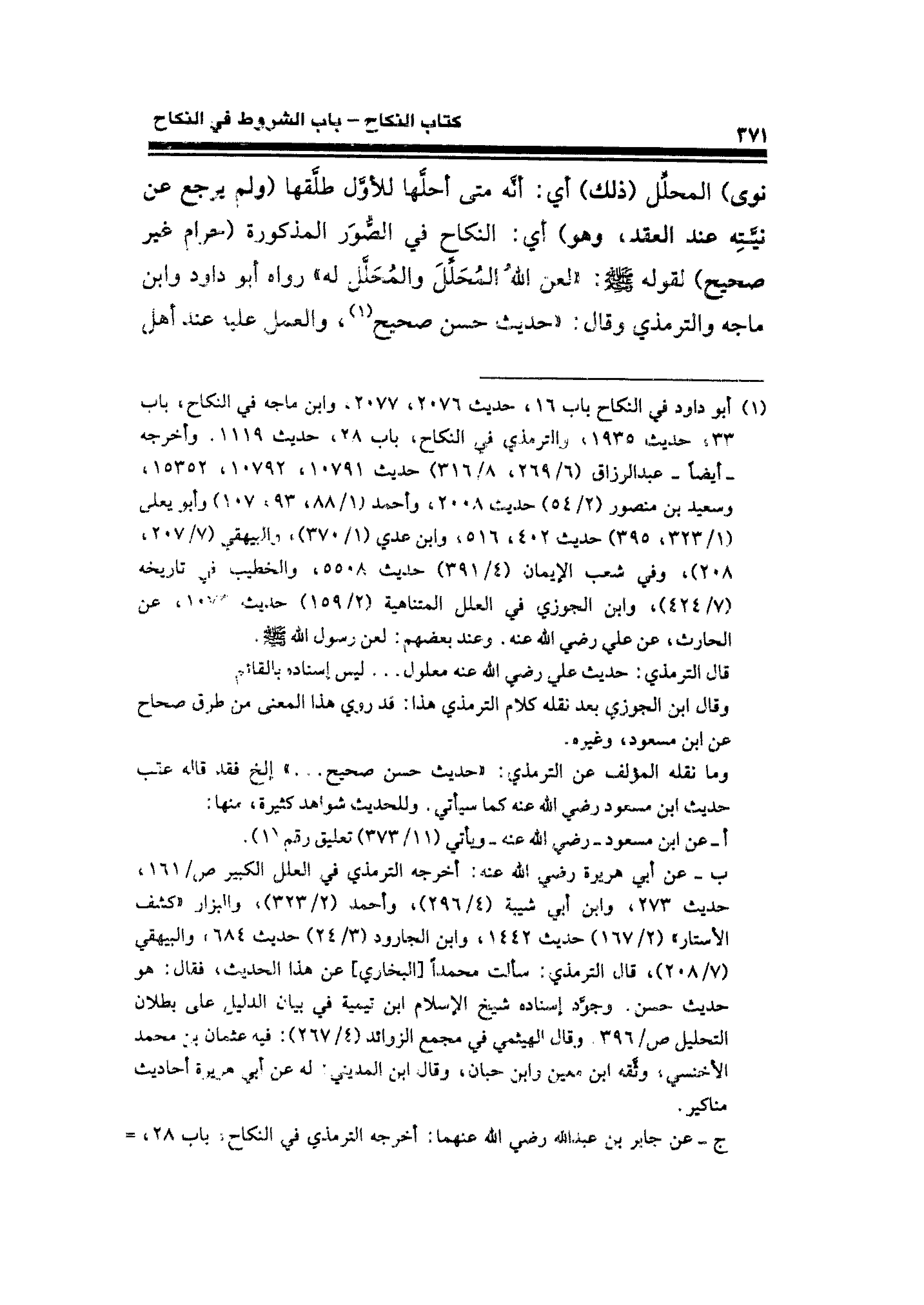 (¬١) أبو داود في النكاح باب ١٦، حديث ٢٠٧٦، ٢٠٧٧، وابن ماجه في النكاح، باب ٣٣ حديث ١٩٣٥، والترمذي في النكاح، باب ٢٨، حديث ١١١٩. وأخرجه -أيضًا- عبد الرزاق (٦/ ٢٦٩، ٨/ ٣١٦) حدث ١٠٧٩١، ١٠٧٩٢، ١٥٣٥٢، وسعيد بن منصور (٢/ ٥٤) حديث ٢٠٠٨، وأحمد (١/ ٨٨، ٩٣، ١٠٧) وأبو يعلى (١/ ٣٢٣، ٣٩٥) حديث ٤٠٢، ٥١٦، واين عدي (١/ ٣٧٠)، والبيهقي (٧/ ٢٠٧، ٢٠٨)، وفي شعب الإيمان (٤/ ٣٩١) حديث ٥٥٠٨، والخطيب في تاريخه (٧/ ٤٢٤)، وابن الجوزي في العلل المتناهية (٢/ ١٥٩) حديث ١٠٧٣، عن الحارث، عن علي رضي الله عنه. وعند بعضهم: لعن رسول الله - صلى الله عليه وسلم -.