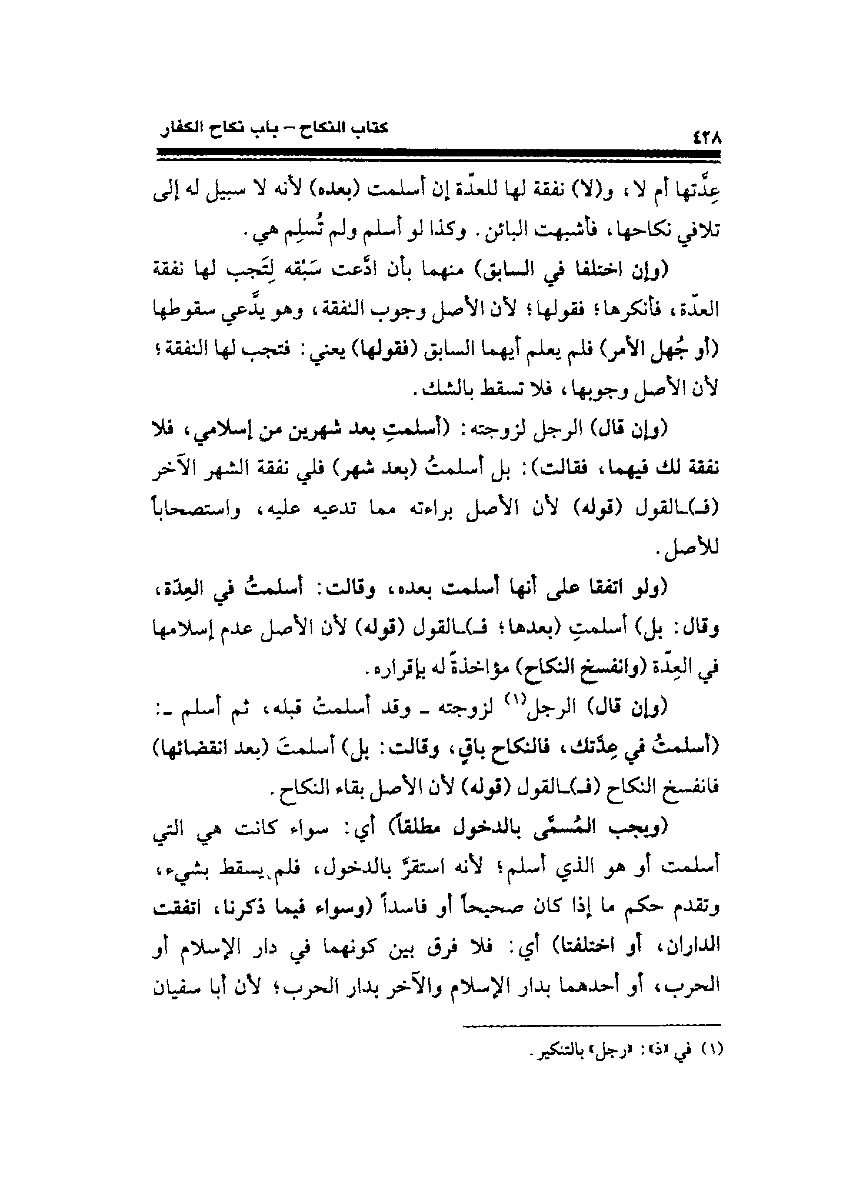 عِدَّتها أم لا، و (لا) نفقة لها للعدّة إن أسلمت (بعده) لأنه لا سبيل له إلى تلافي نكاحها، فأشبهت البائن. وكذا لو أسلم ولم تُسلِم هي.