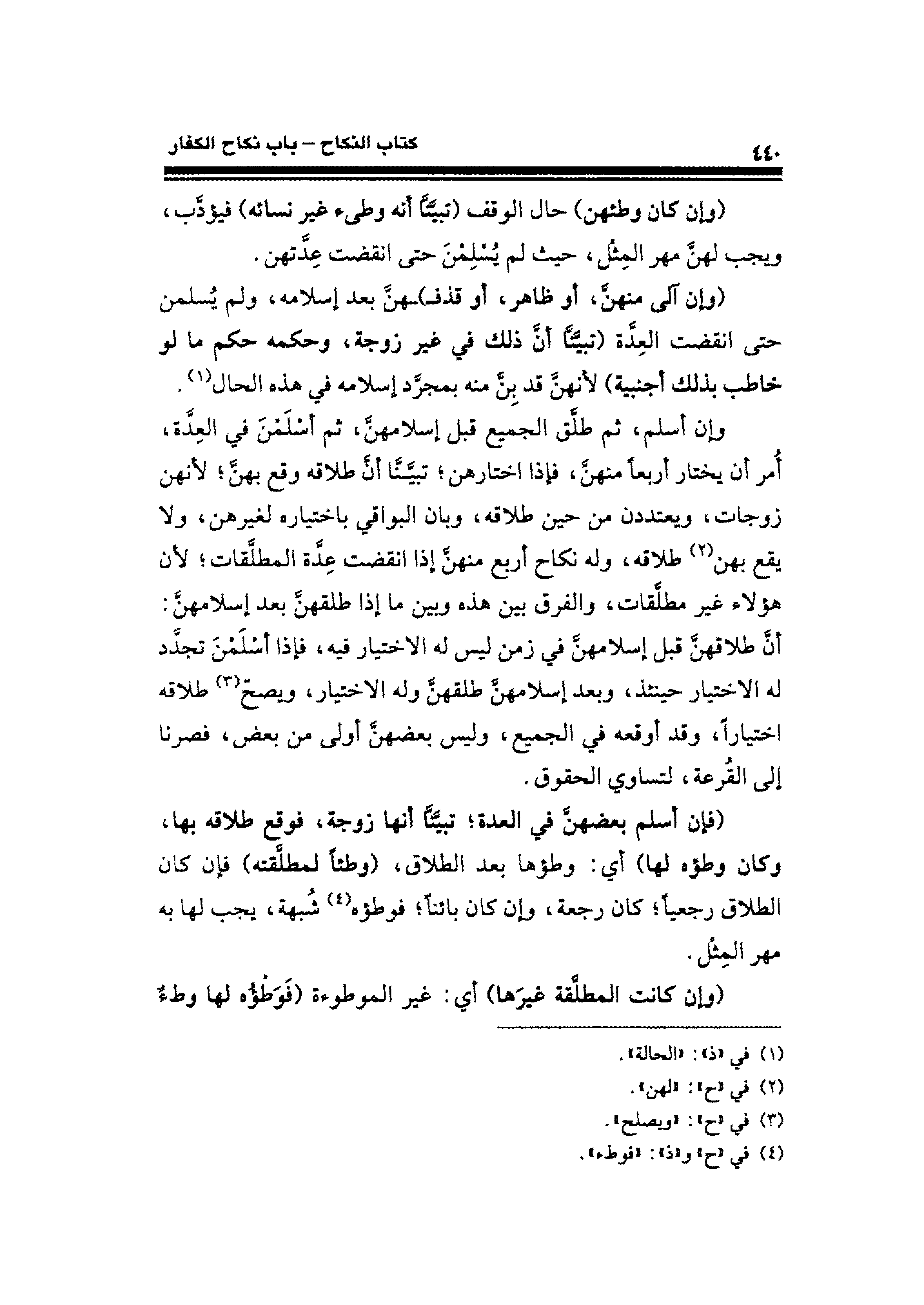 (فإن أسلم بعضهنَّ في العدة؛ تبيَّنَّا أنها زوجة، فوقع طلاقه بها، وكان وطؤه لها) أي: وطؤها بعد الطلاق، (وطئًا لمطلَّقته) فإن كان الطلاق رجعيًّا؛ كان رجعة، وإن كان بائنًا؛ فوطؤه (¬٤) شُبهة، يجب لها به مهر المِثل.