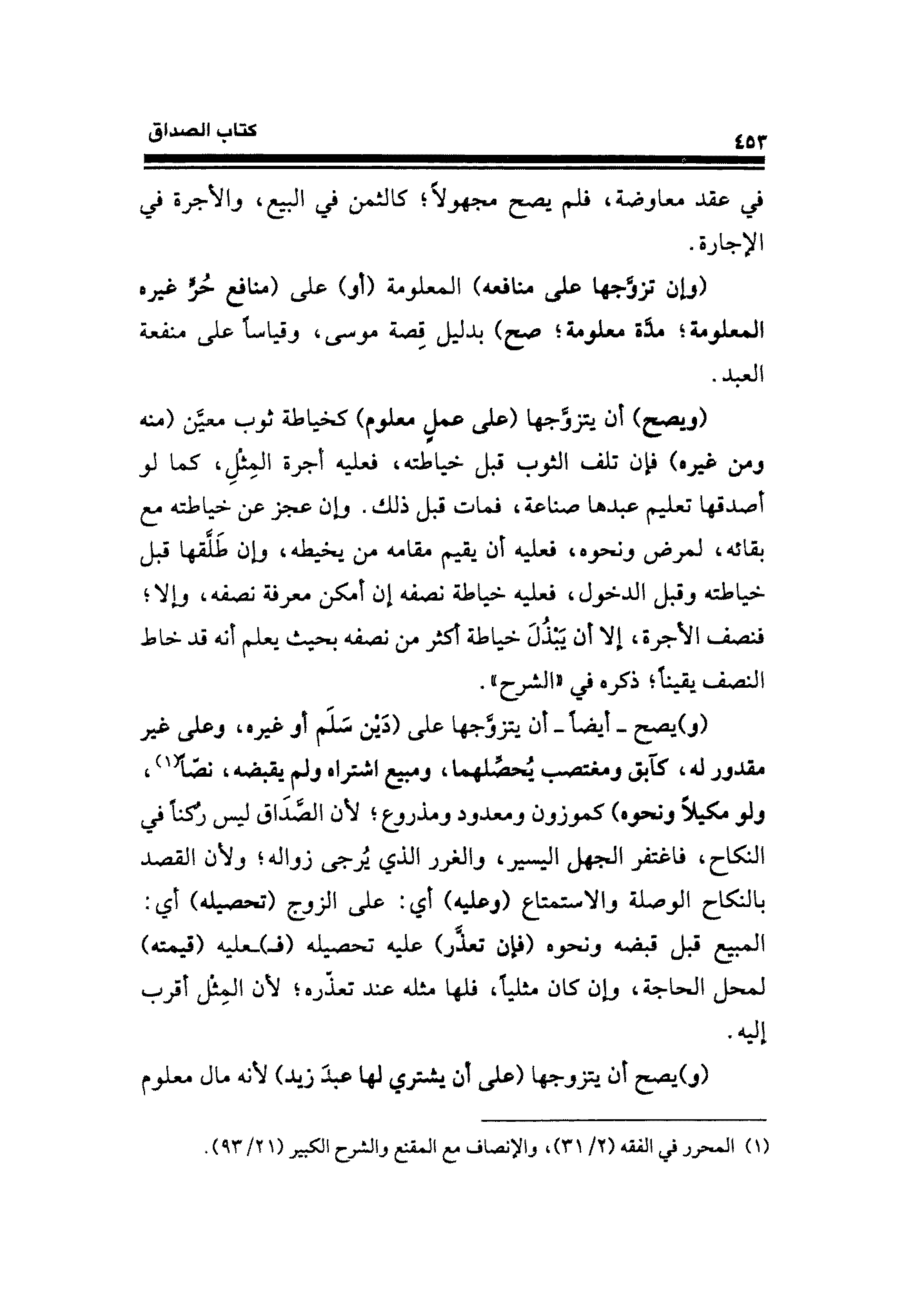 (¬١) المحرر في الفقه (٢/ ٣١)، والإنصاف مع المقنع والشرح الكبير (٢١/ ٩٣).