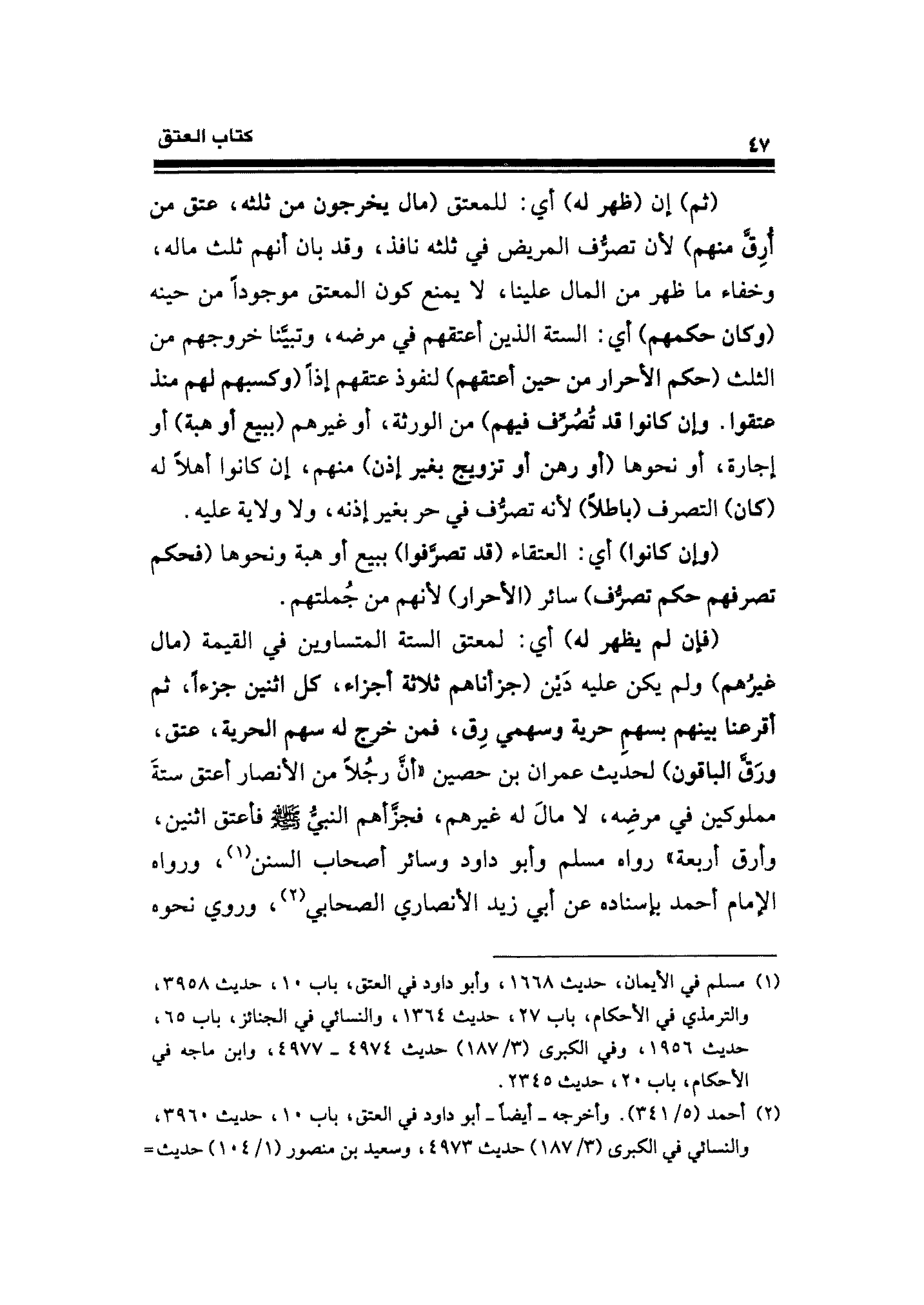 (¬١) مسلم في الأيمان، حديث ١٦٦٨، وأبو داود في العتق، باب ١٠، حديث ٣٩٥٨، والترمذى في الأحكام، باب ٢٧، حديث ١٣٦٤، والنسائي في الجنائز، باب ٦٥، حديث ١٩٥٦، وفي الكبرى (٣/ ١٨٧) حديث ٤٩٧٤ - ٤٩٧٧، وابن ماجه في الأحكام، باب ٢٠ حديث ٢٣٤٥.