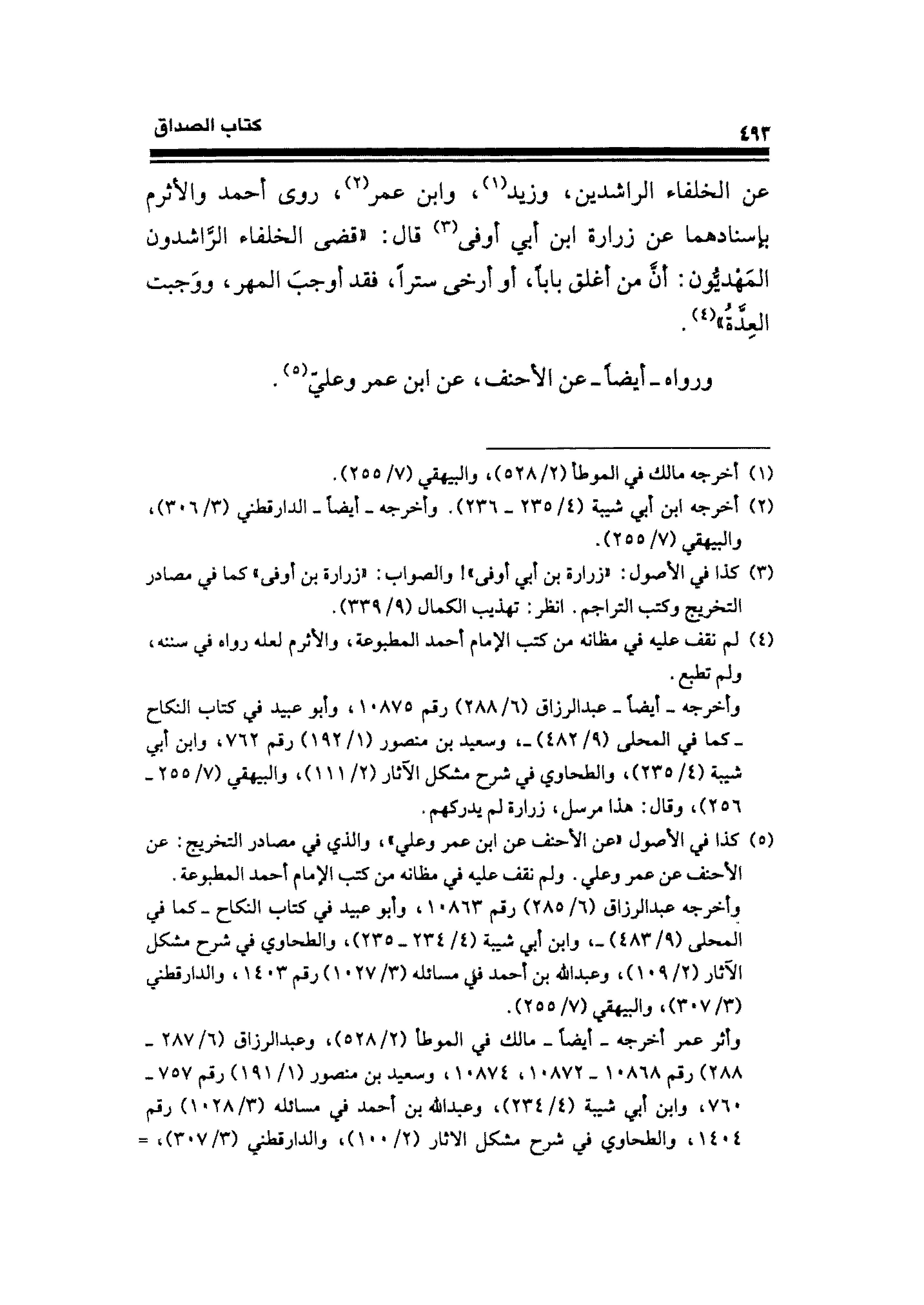 (¬٥) كذا في الأصول "عن الأحنف عن ابن عمر وعلي"، والذي في مصادر التخريج: عن الأحنف عن عمر وعلي. ولم نقف عليه في مظانه من كتب الإمام أحمد المطبوعة.