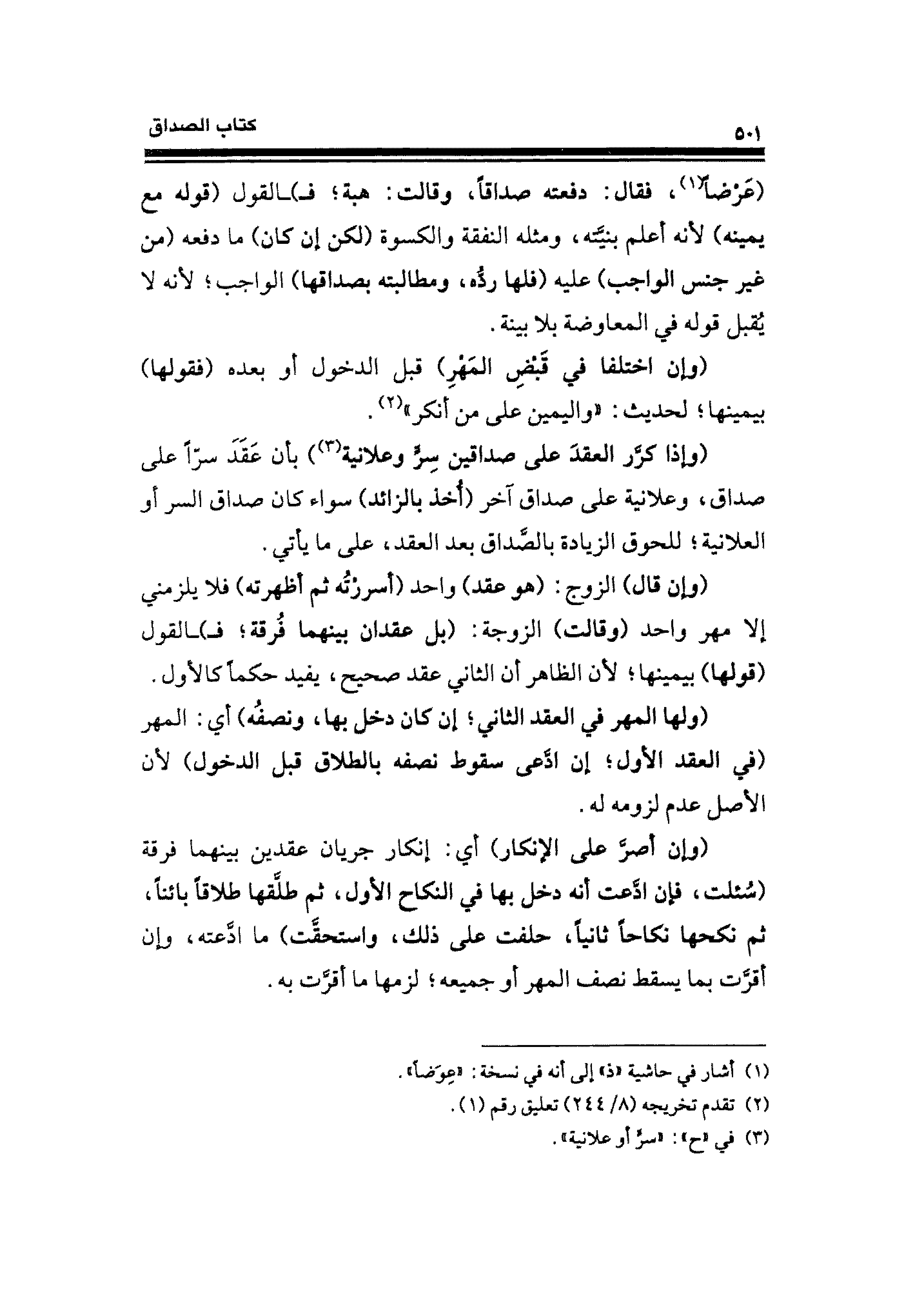 (وإذا كرَّر العقدَ على صداقين سِرٍّ وعلانية (¬٣)) بأن عَقدَ سرًّا على صداق، وعلانية على صداق آخر (أُخذ بالزائد) سواء كان صداق السر أو العلانية؛ للحوق الزيادة بالصَّداق بعد العقد، على ما يأتي.
