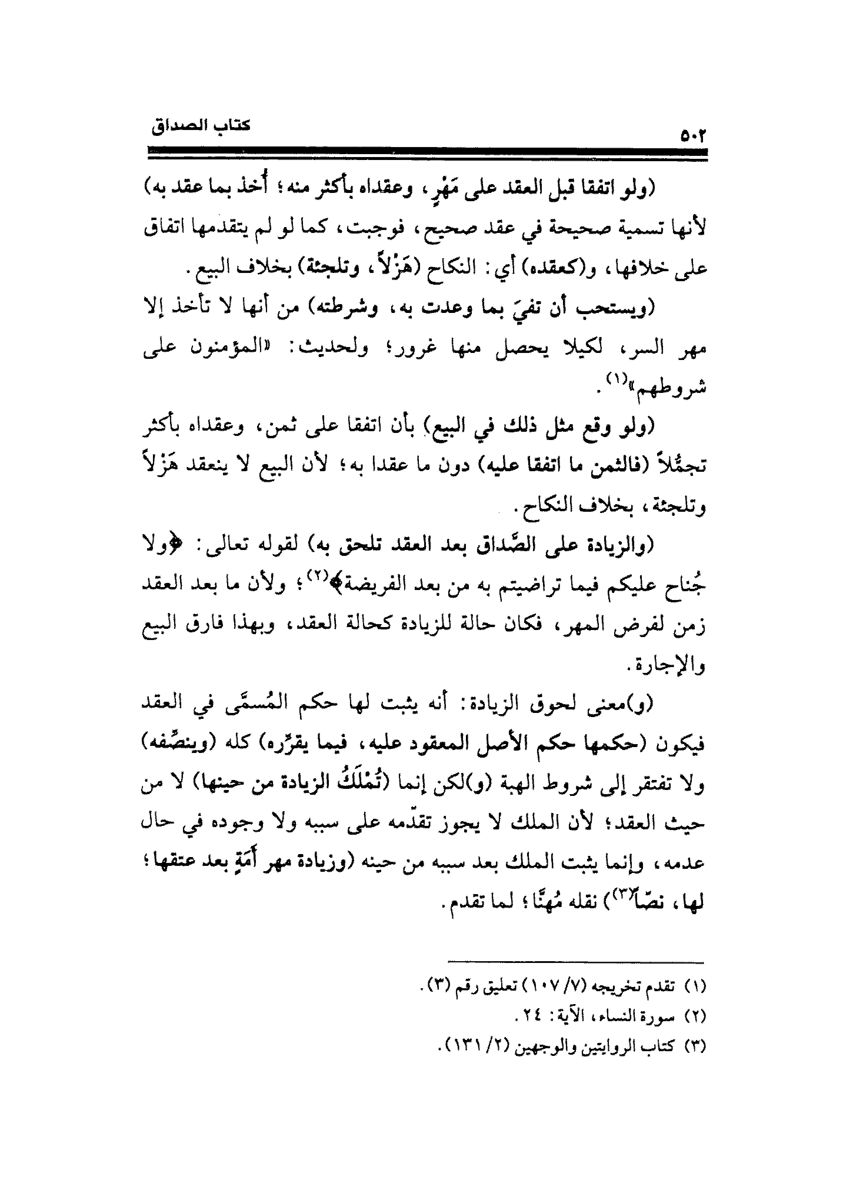 (والزيادة على الصَّداق بعد العقد تلحق به) لقوله تعالى: {وَلَا جُنَاحَ عَلَيكُمْ فِيمَا تَرَاضَيتُمْ بِهِ مِنْ بَعْدِ الْفَرِيضَةِ} (¬٢)؛ ولأن ما بعد العقد زمن لفرض المهر، فكان حالة للزيادة كحالة العقد، وبهذا فارق البيع والإجارة.
