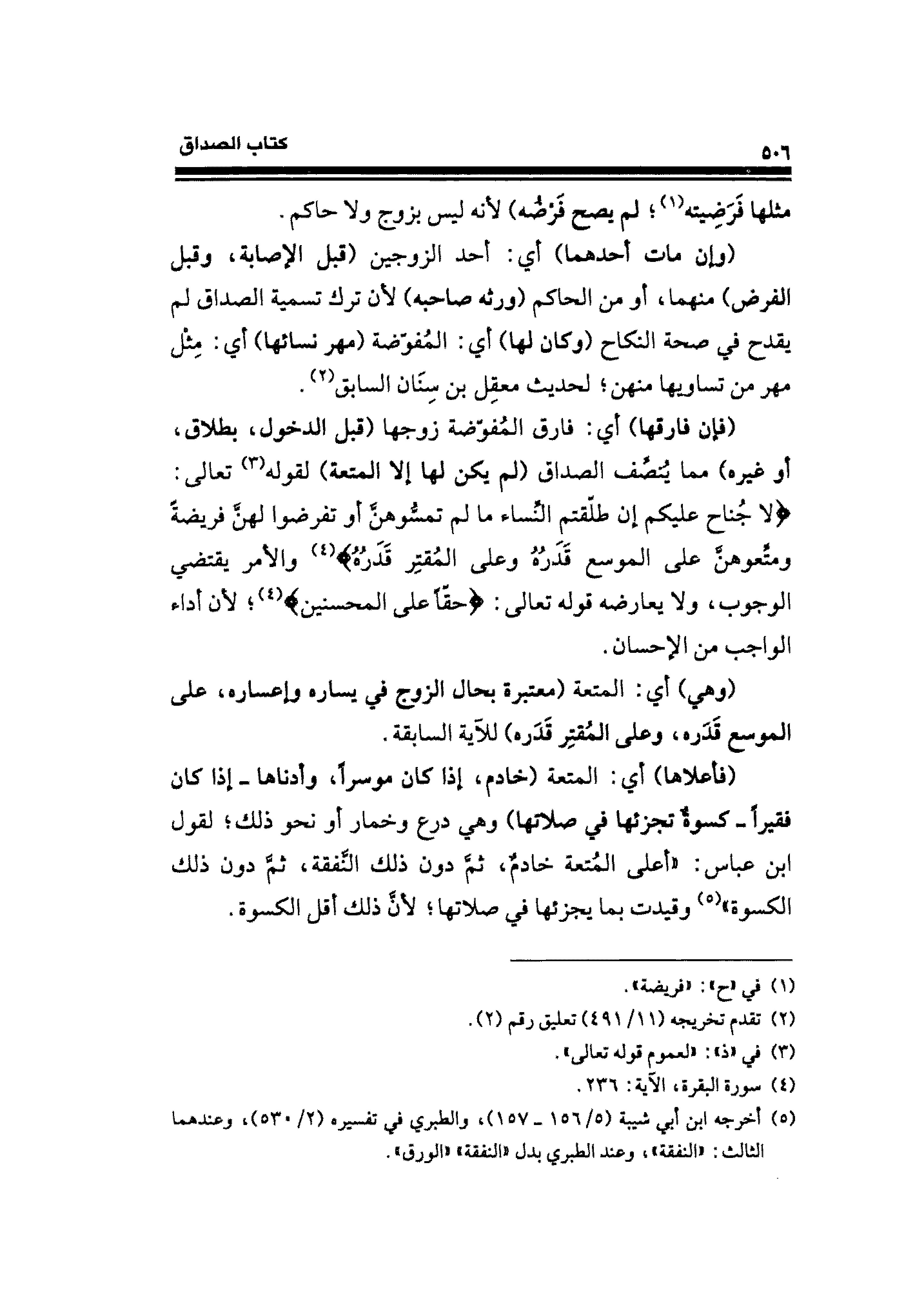(¬٤) سورة البقرة، الآية: ٢٣٦.