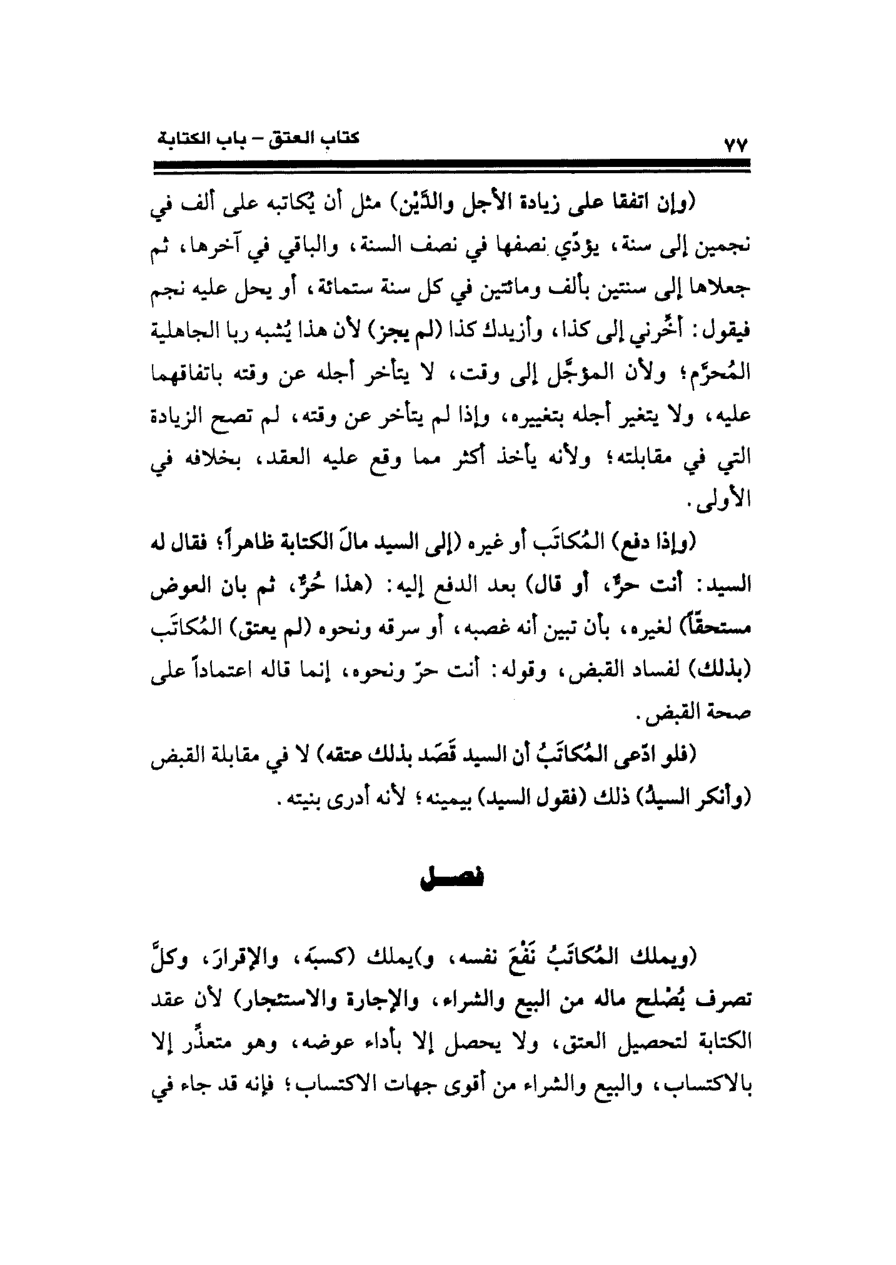 (ويملك المُكاتَبُ نَفْعَ نفسه، و) يملك (كسبَه، والإقرارّ، وكلَّ تصرف يُصْلح ماله من البيع والشراء، والإجارة والاستئجار) لأن عقد الكتابة لتحصيل العتق، ولا يحصل إلا بأداء عوضه، وهو متعذِّر ألا بالاكتساب، والبيع والشراء من أقوى جهات الاكتساب؛ فإنه قد جاء في