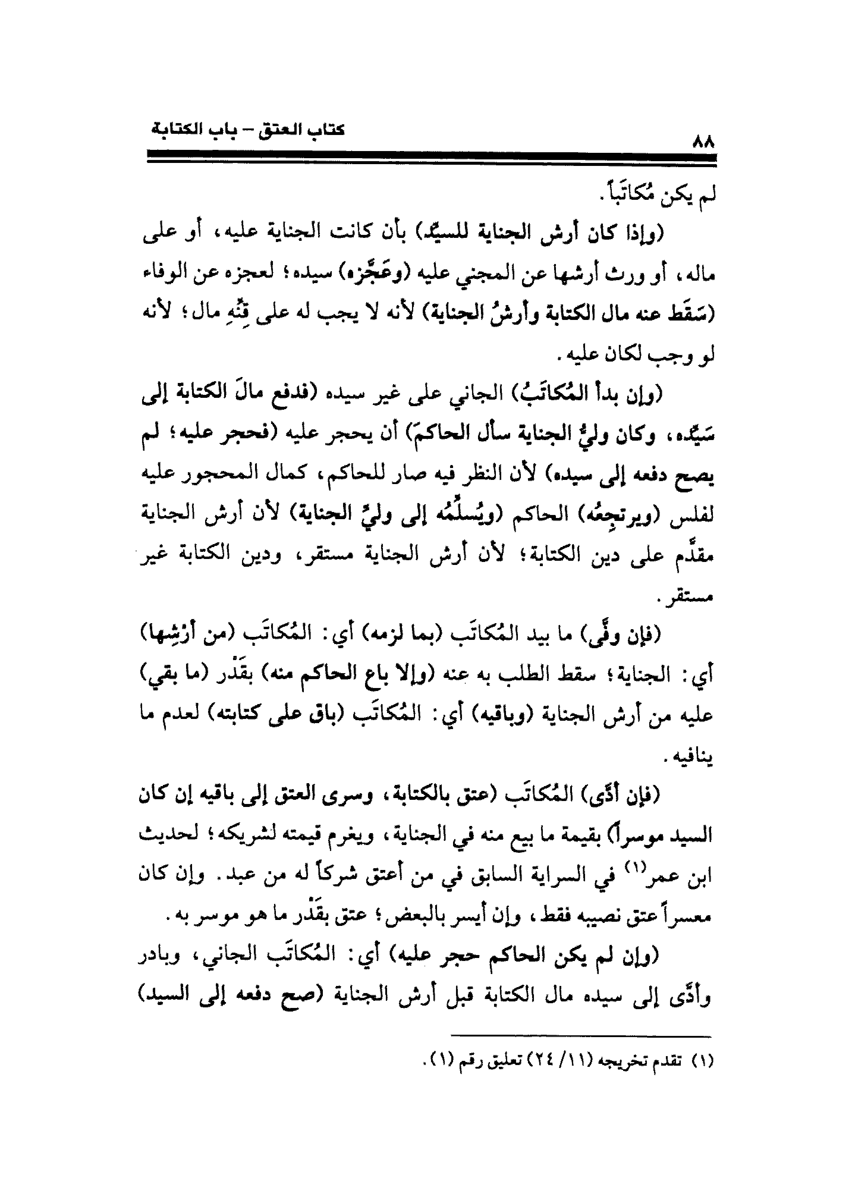 (وإن بدأ المكاتبُ) الجاني على غير سيده (فدفع مال الكتابة إلى سيده، وكان وليُّ الجناية سأل الحاكمَ) أن يحجر عليه (فحجر عليه؛ لم يصح دفعه إلى سيده) لأن النظر فيه صار للحكم، كمال المحجور عليه لفلس (ويرتجعُه) الحاكم (ويُسلِّمُه إلى وليِّ الجنابة) لأن أرش الجناية مقدم على دين الكتابة؛ لأن أرش الجناية مستقر، ودين الكتابة غير مستقر.