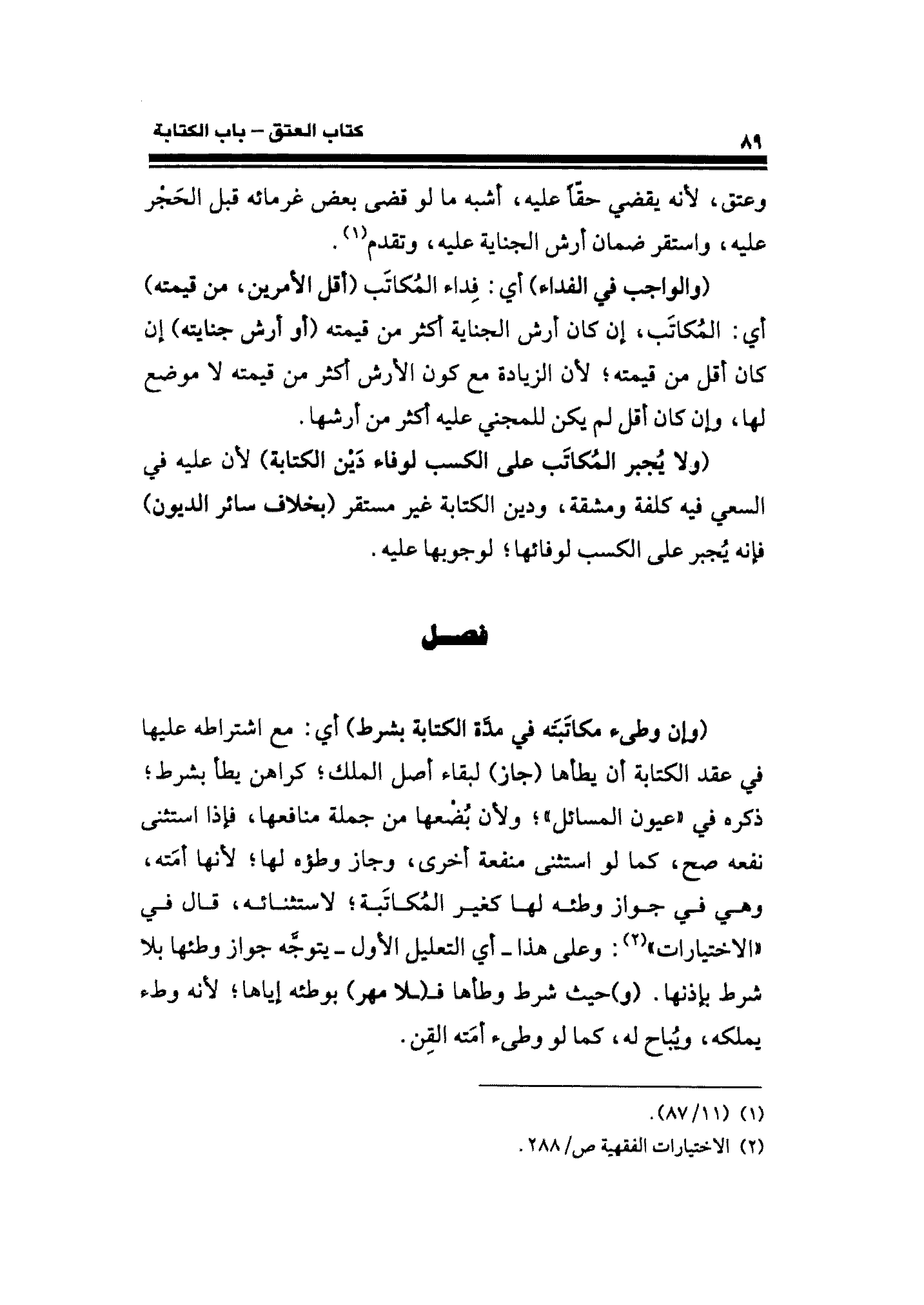 (¬٢) الاختيارات الفقهية ص / ٢٨٨.