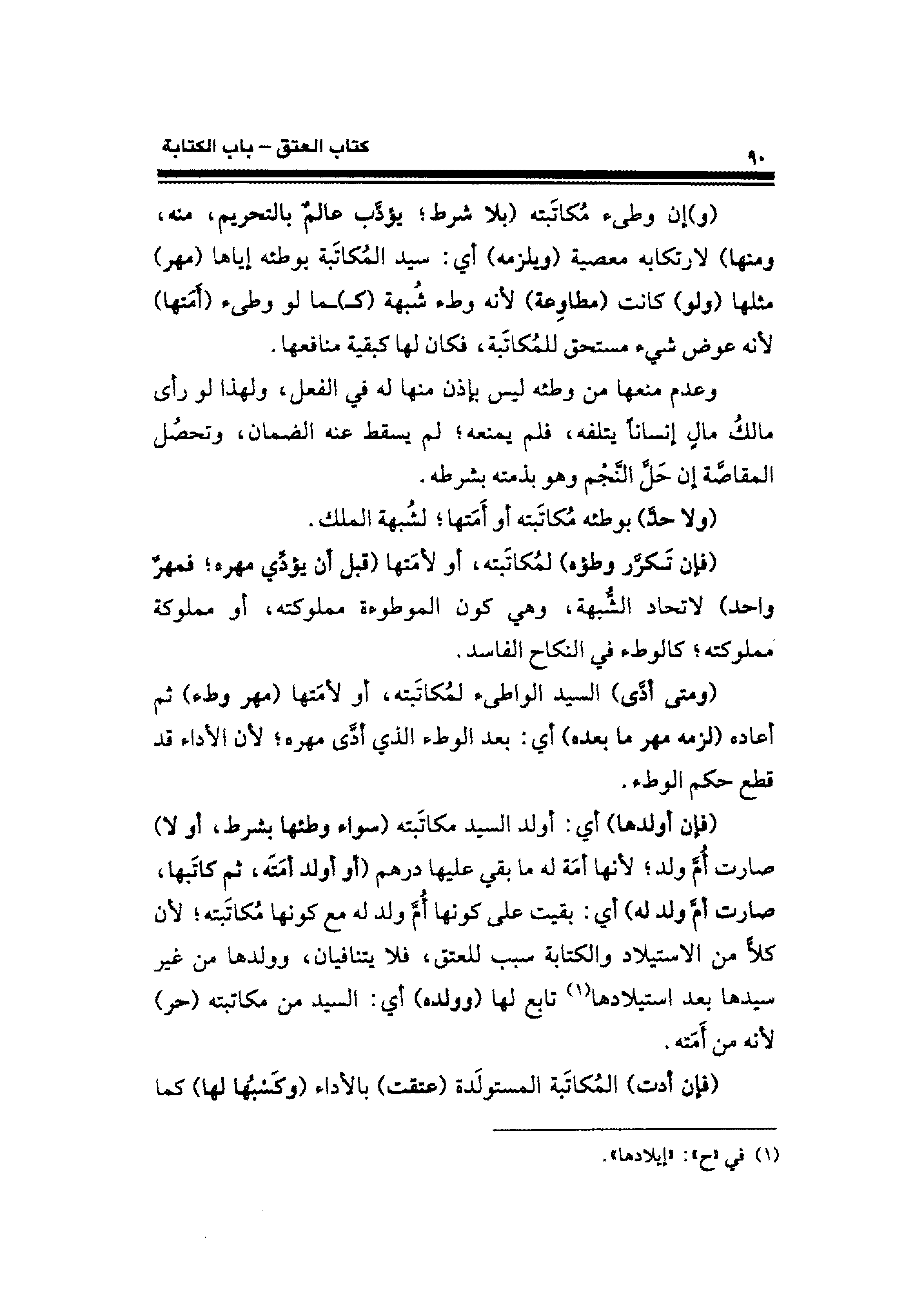 (ولا حدَّ) بوطئه مُكاتَبته أو أَمَتها؛ لشُبهة الملك.