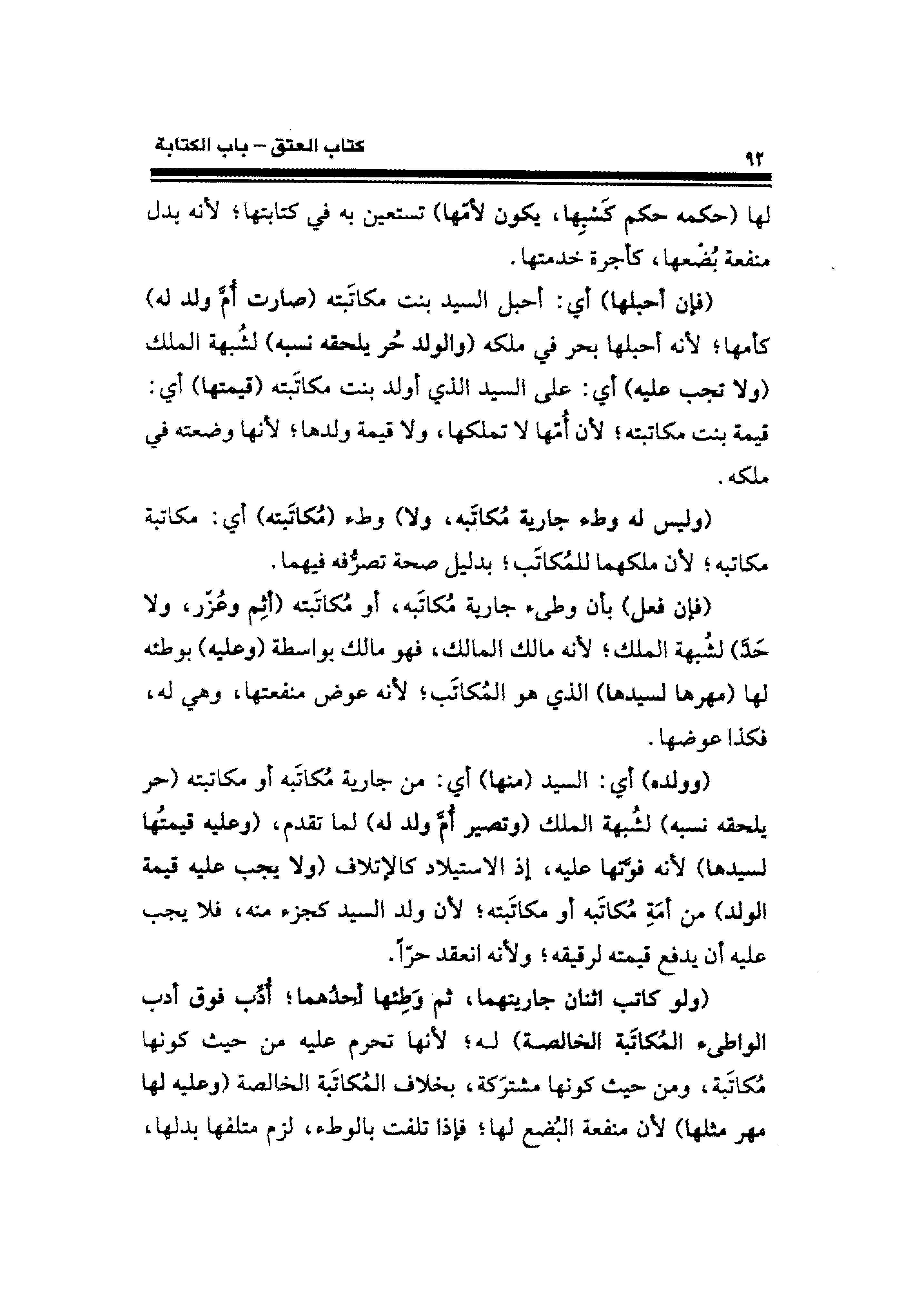 (وولده) أي: السيد (منها) أي: من جارية مُكاتَبه أو مكاتبته (حر يلحقه نسبه) لشُبهة الملك (وتصير أم ولد له) لما تقدم، (وعليه قيمتُها لسيدها) لأنه فوَّتها عليه، إذ الاستيلاد كالإتلاف (ولا يجب عليه قيمة الولد) من أمَةِ مُكاتَبه أو مكاتَبته؛ لأن ولد السيد كجزء منه، فلا يجب عليه أن يدفع قيمته لرقيقه؛ ولأنه انعقد حرًّا.