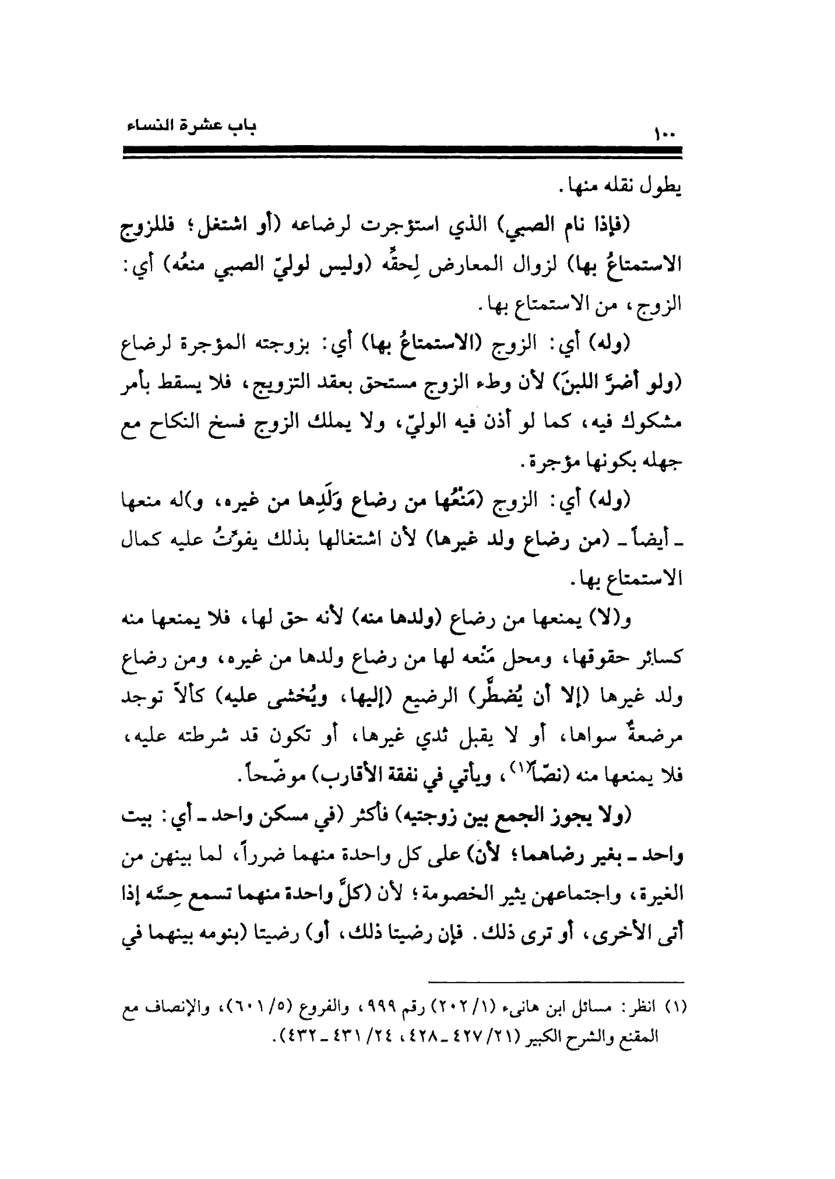 (¬١) انظر: مسائل ابن هانئ (١/ ٢٠٢) رقم ٩٩٩، والفروع (٥/ ٦٠١)، والإنصاف مع المقنع والشرح الكبير (٣١/ ٤٢٧ - ٤٢٨، ٢٤/ ٤٣١ - ٤٣٢).