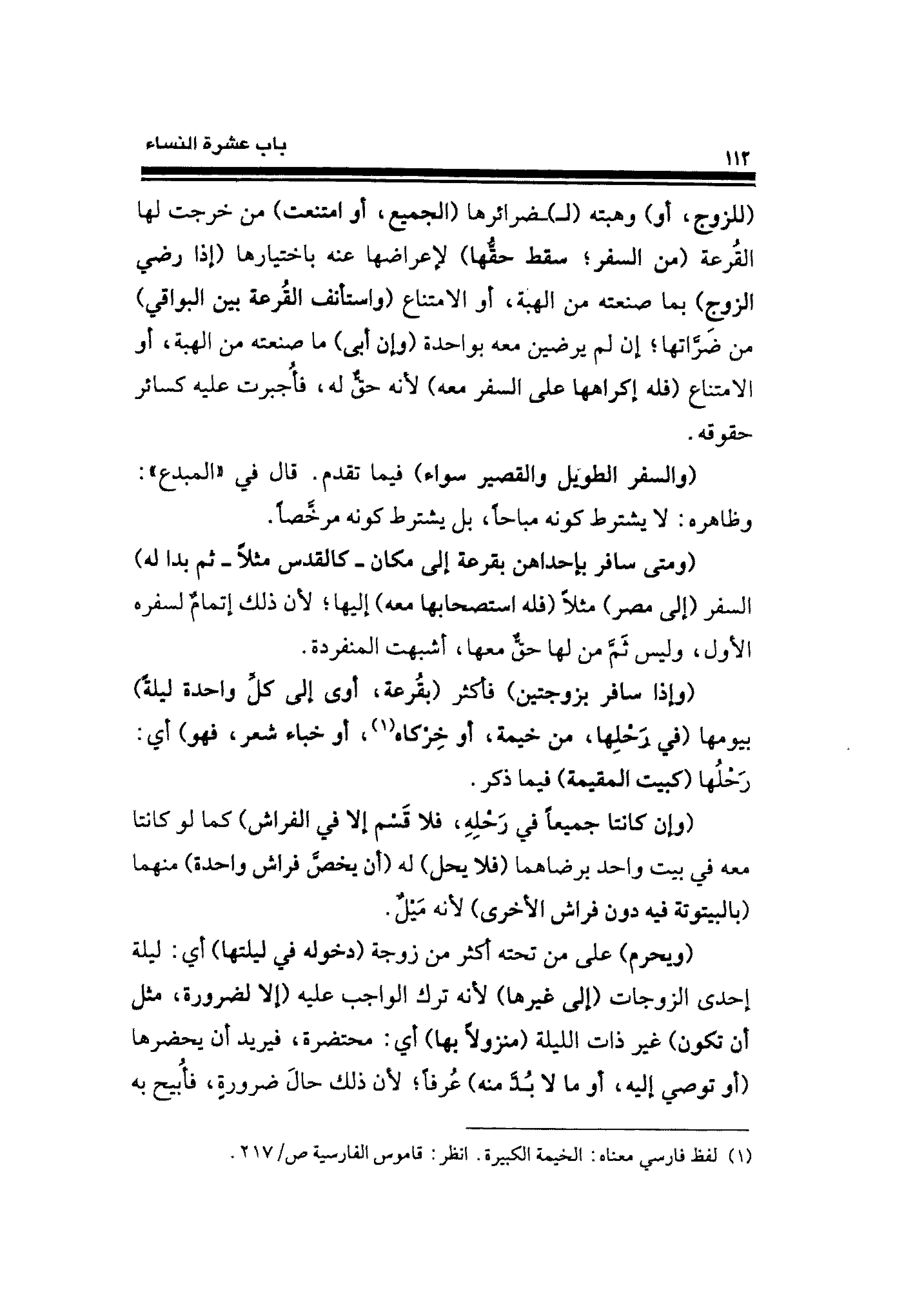 (وإذا سافر بزوجتين) فأكثر (بقُرعة، أوى إلى كل واحدة ليلة) بيومها (في رَحْلِها، من خيمة، أو خِرْكاه (¬١)، أو خباء شعر، فهو) أي: رَحْلُها (كبيت المقيمة) فيما ذكر.