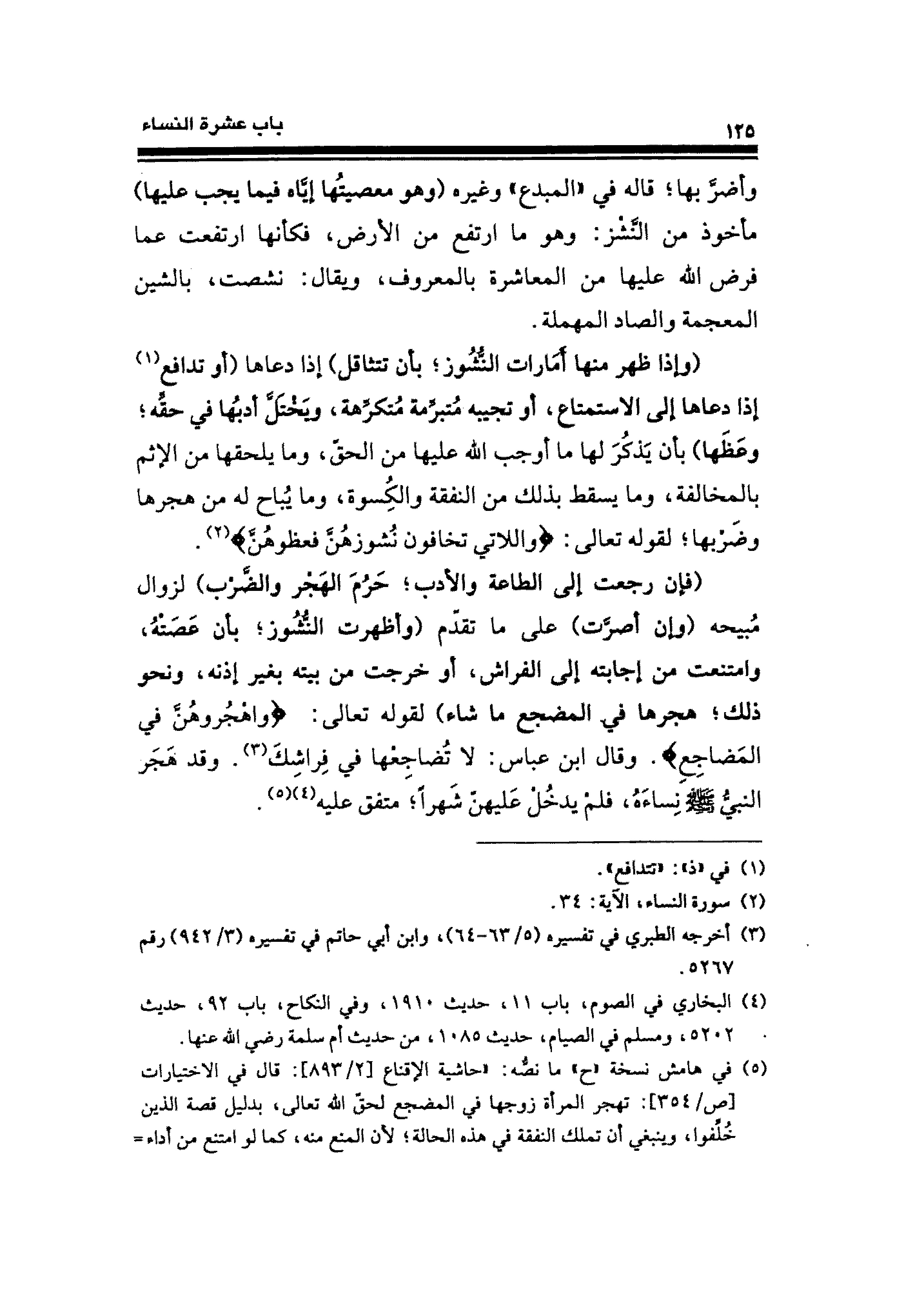 (¬٥) في هامش نسخة "ح" ما نصُّه: "حاشية الإقناع [٢/ ٨٩٣]: قال في الاختيارات [ص / ٣٥٤]: تهجر المرأة زوجها في المضجع لحق الله تعالى، بدليل قصة الذين خُلِّفوا، وينبغي أن تملك النفقة في هذه الحالة؛ لأن المنع منه، كما لو امتنع من أداء =