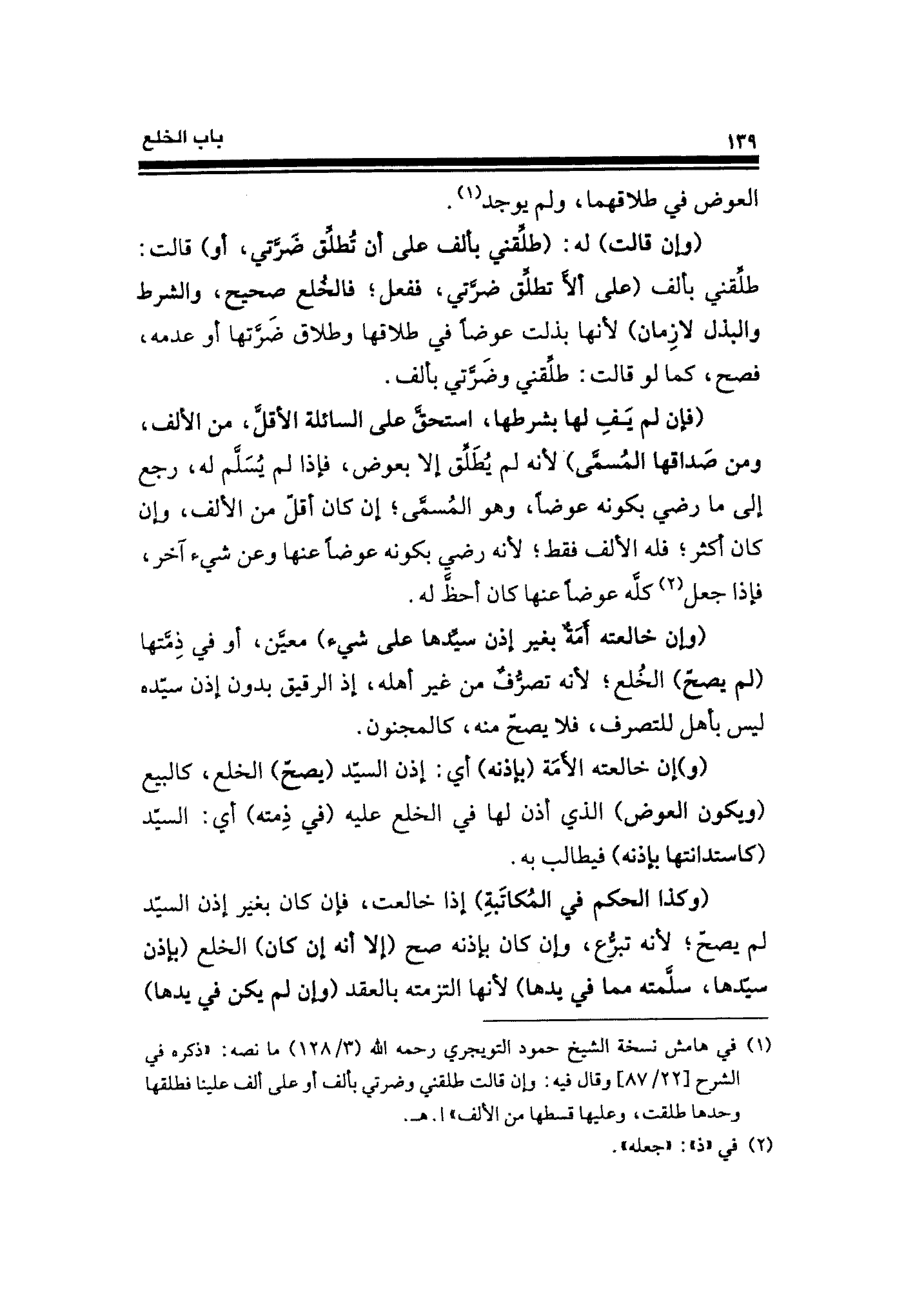 (¬١) في هامش نسخة الشيخ حمود التويجري رحمه الله (٣/ ١٢٨) ما نصه: "ذكره في الشرح [٢٢/ ٨٧] وقال فيه: وإن قالت طلقني وضرتي بألف أو على ألف علينا فطلقها وحدها طلقت، وعليها قسطها من الألف" ا. هـ.