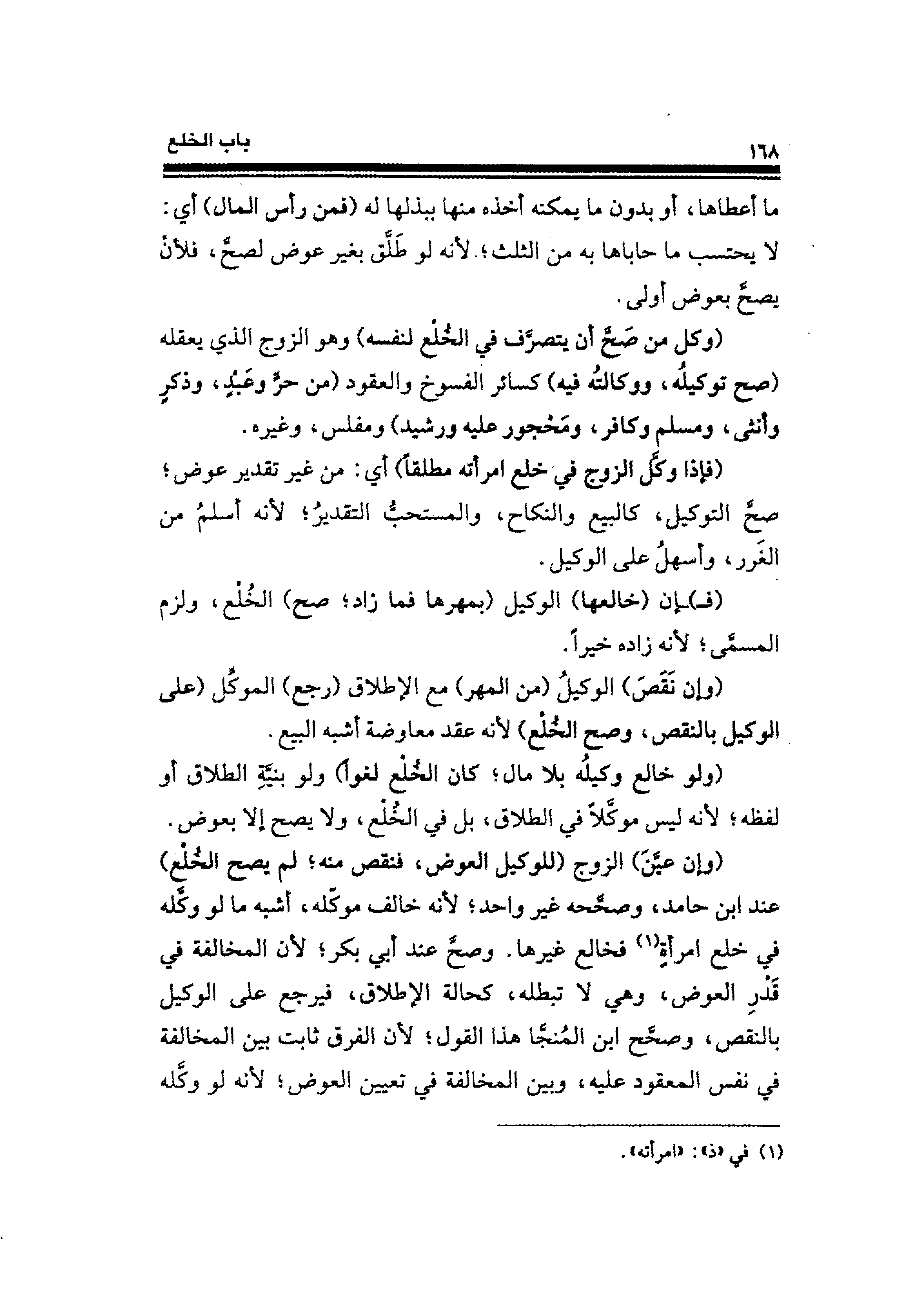 (فإذا وكَّل الزوج في خلع امرأته مطلقًا) أي: من غير تقدير عوض؛ صح التوكيل، كالبيع والنكاح، والمستحب التقدير؛ لأنه أسلمُ من الغَرر، وأسهلُ على الوكيل.