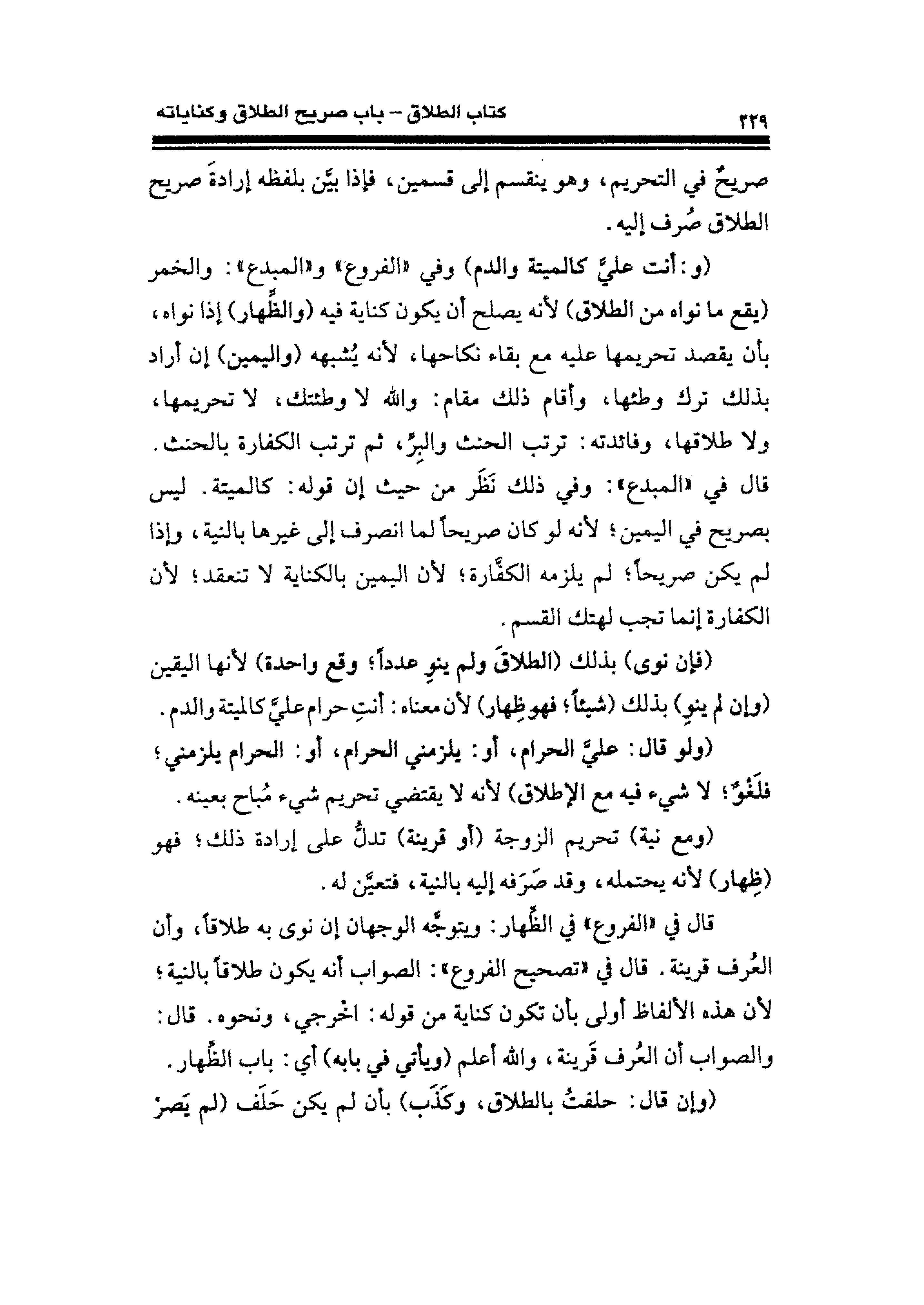 صريحٌ في التحريم، وهو ينقسم إلى قسمين، فإذا بيَّن بلفظه إرادةَ صريح الطلاق صُرف إليه.