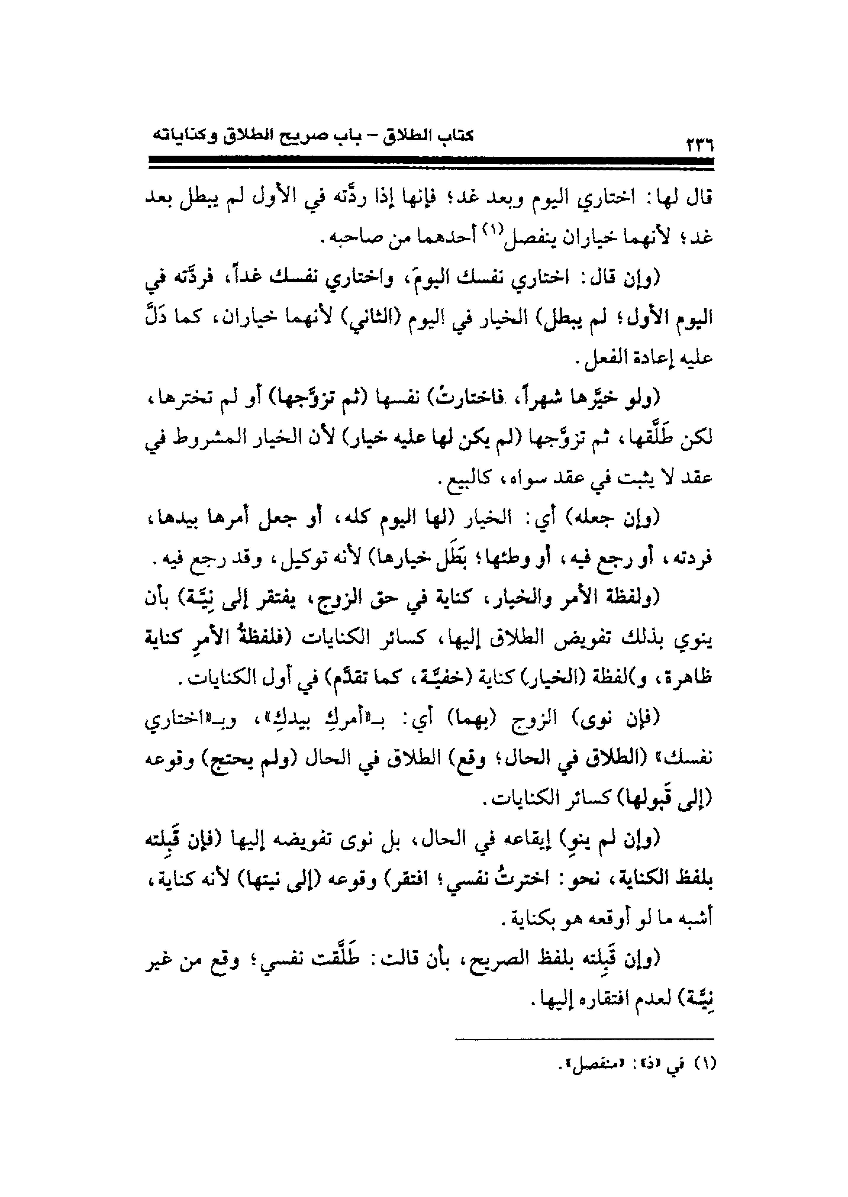 (وإن قال: اختاري نفسك اليوم، واختاري نفسك غدًا، فردَّته في اليوم الأول؛ لم يبطل) الخيار في اليوم (الثاني) لأنهما خياران، كما دَلَّ عليه إعادة الفعل.
