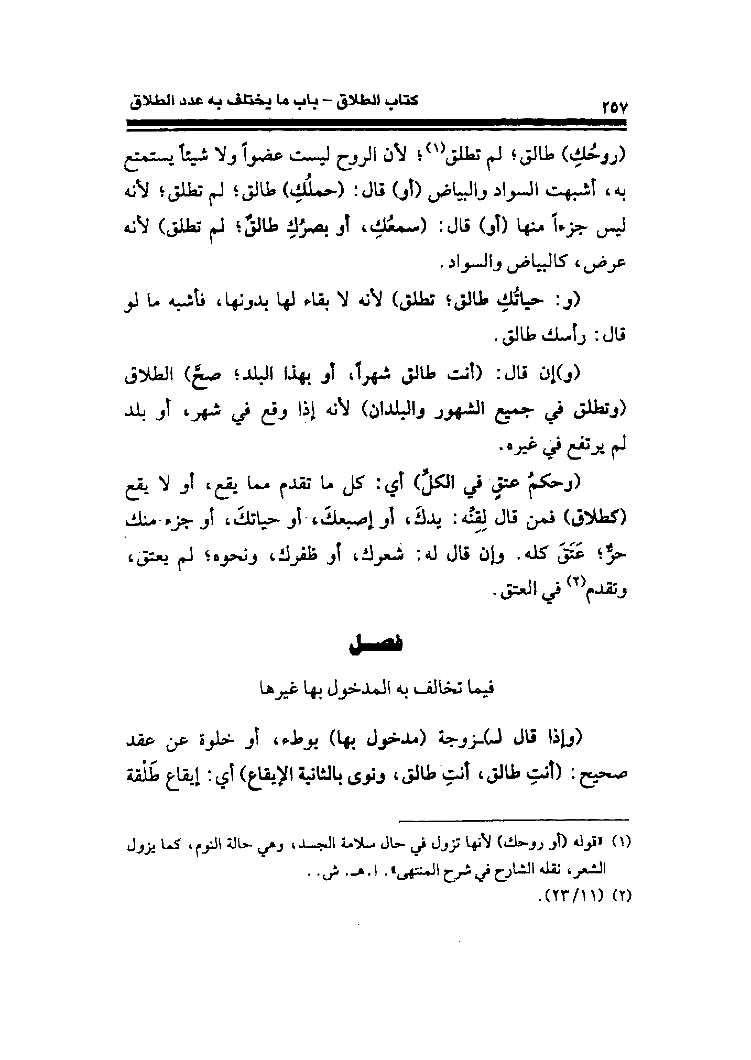 (روحُك) طالق؛ لم تطلق (¬١)؛ لأن الروح ليست عضوًا ولا شيئًا يستمتع به، أشبهت السواد والبياض (أو) قال: (حملُكٍ) طالق؛ لم تطلق؛ لأنه ليس جزءًا منها (أو) قال: (سمعُكِ، أو بصرُكِ طالقٌ؛ لم تطلق) لأنه عرض، كالبياض والسواد.