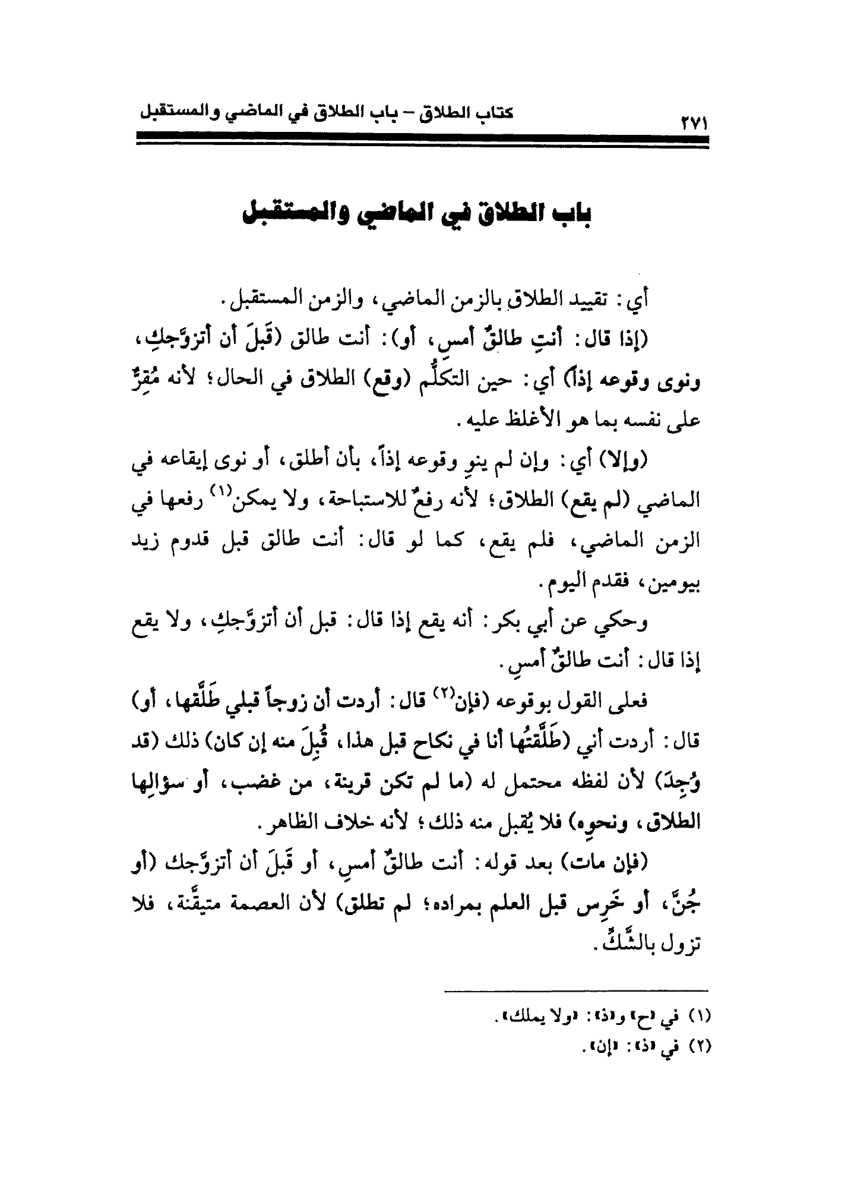 أي: تقييد الطلاق بالزمن الماضي، والزمن المستقبل.