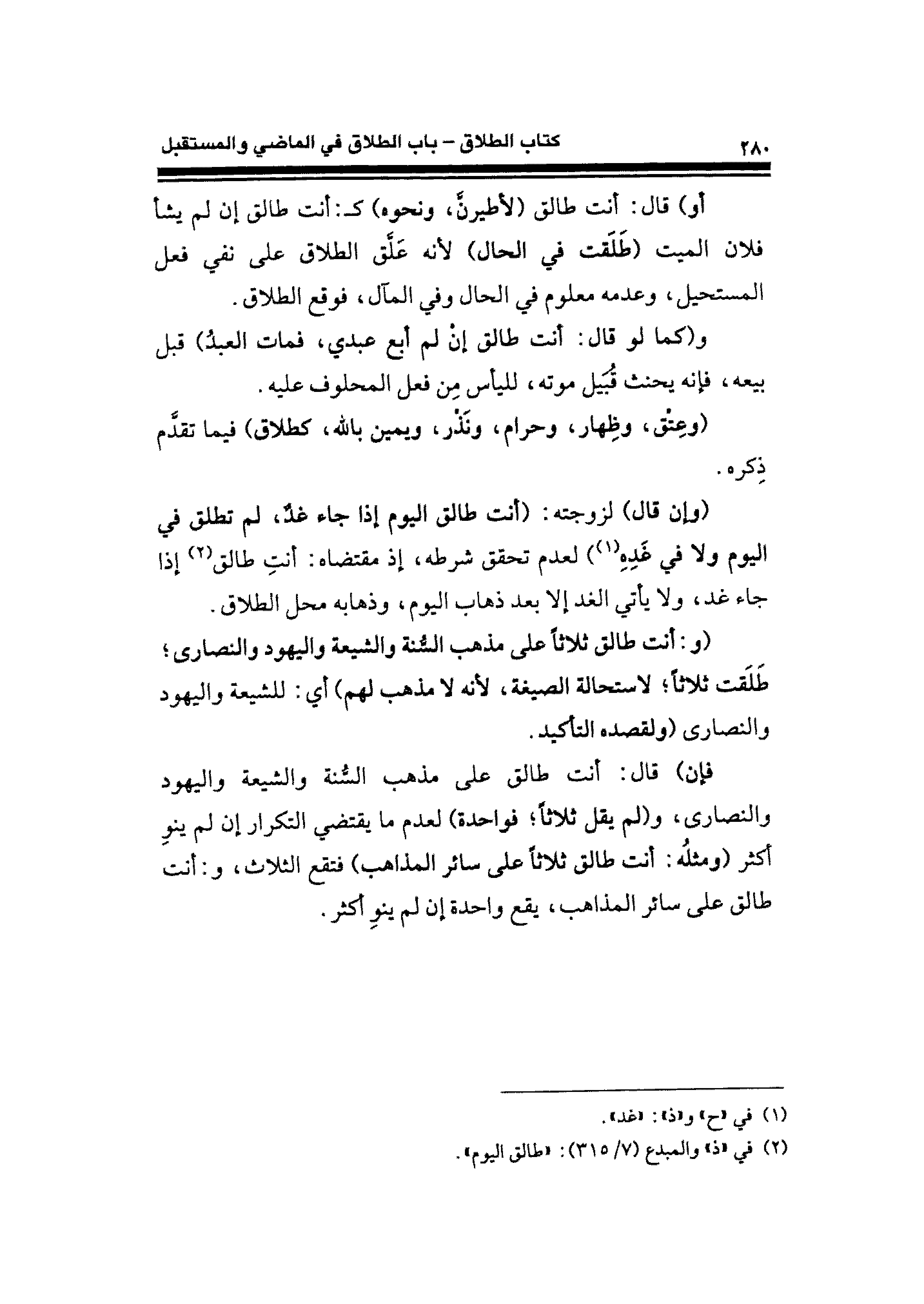 (¬٢) في "ذ" والمبدع (٧/ ٣١٥): "طالق اليوم".