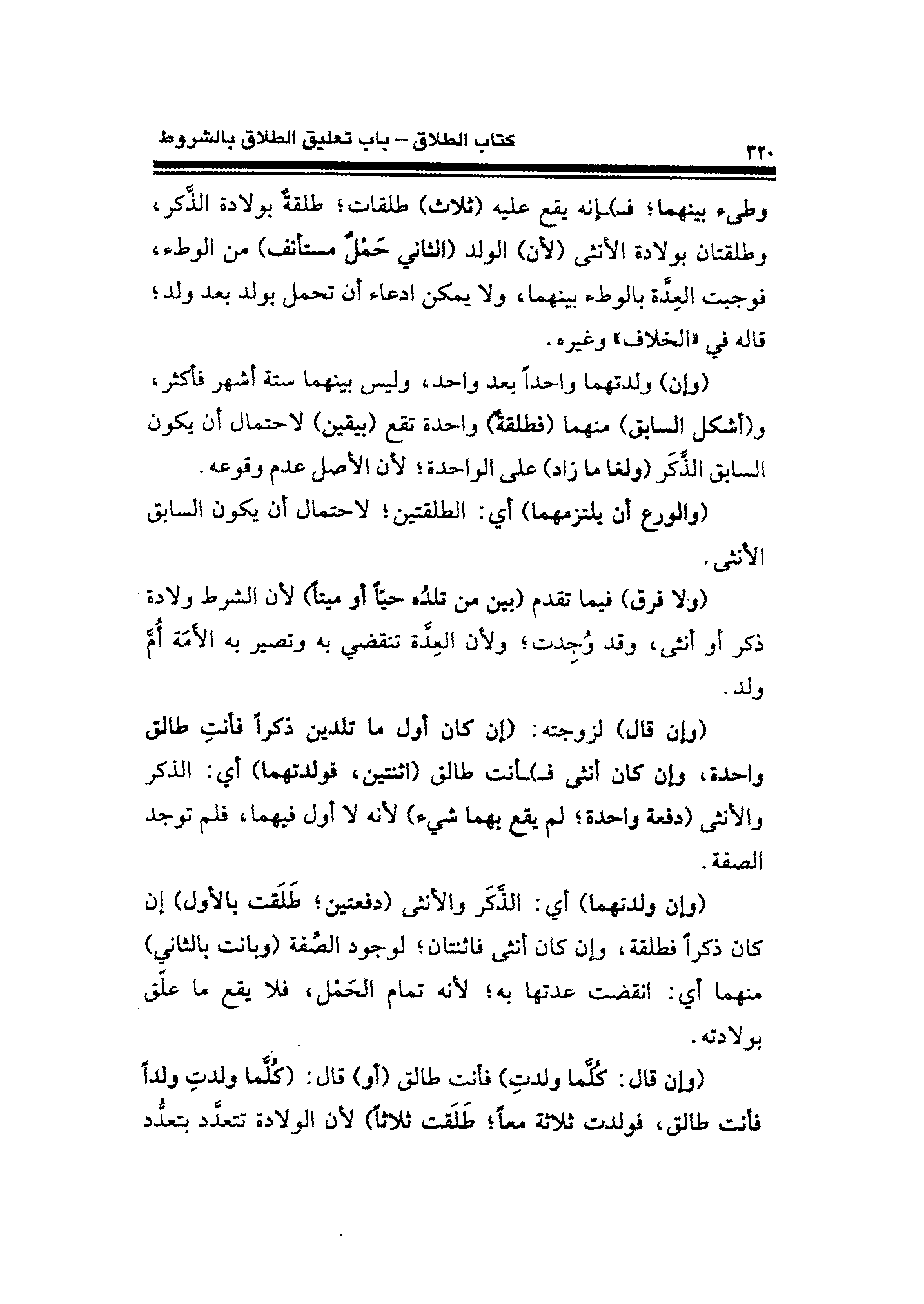(وإن قال) لزوجته: (إن كان أول ما تلدين ذكرًا فأنتِ طالق واحدة، وإن كان أنثى فـ) ـأنت طالق (اثنتين، فولدتهما) أي: الذكر والأنثى (دفعة واحدة؛ لم يقع بهما شيء) لأنه لا أول فيهما، فلم توجد الصفة.