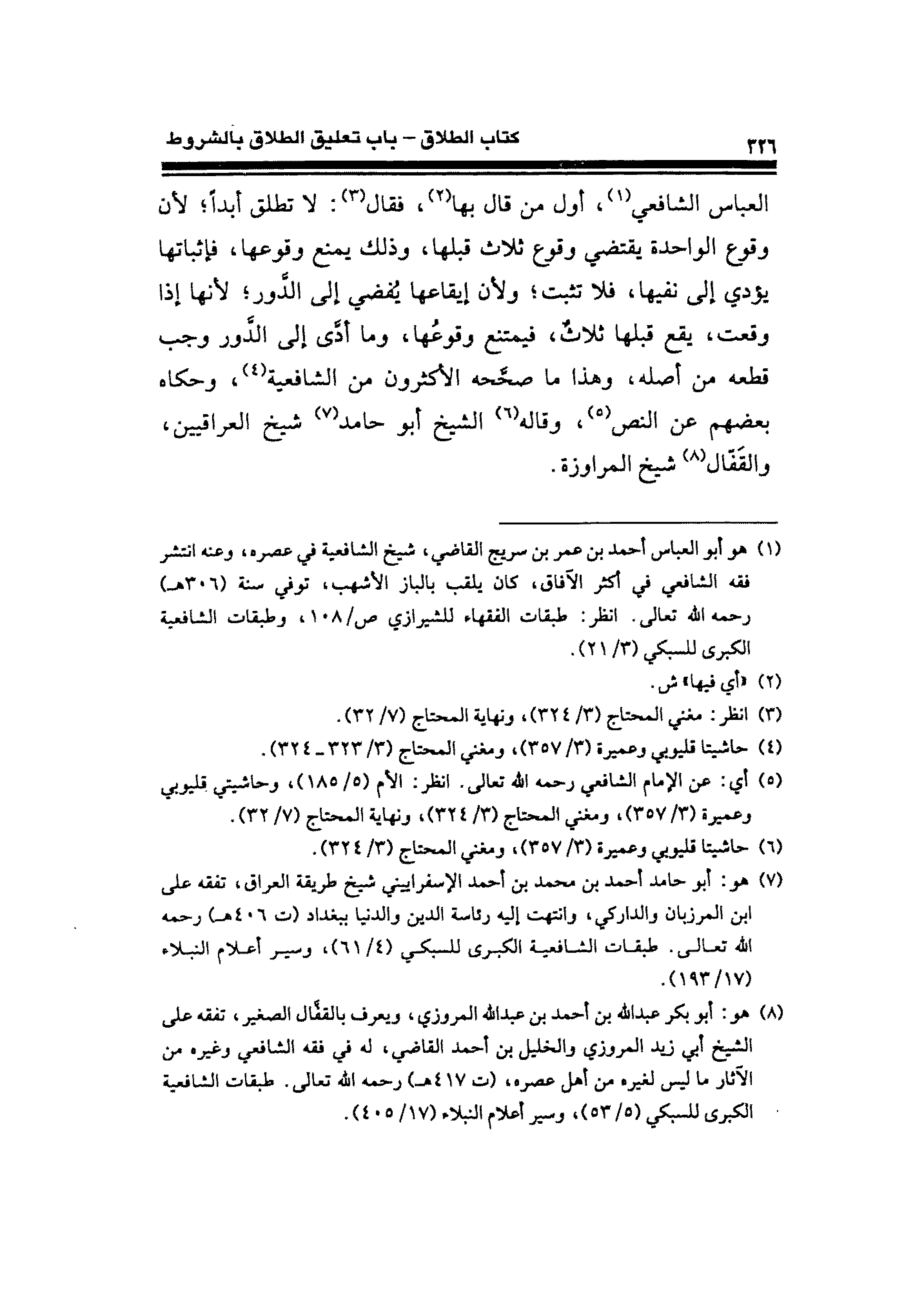 (¬٧) هو: أبو حامد أحمد بن محمَّد بن أَحْمد الإسفراييني شيخ طريقة العراق، تفقه على ابن المرزبان والداركي، وانتهت إليه رئاسة الدين والدنيا بغداد (ت ٤٠٦ هـ) رحمه الله تعالى. طبقات الشافعية الكبرى للسبكي (٤/ ٦١)، وسير أعلام النبلاء (١٧/ ١٩٣).