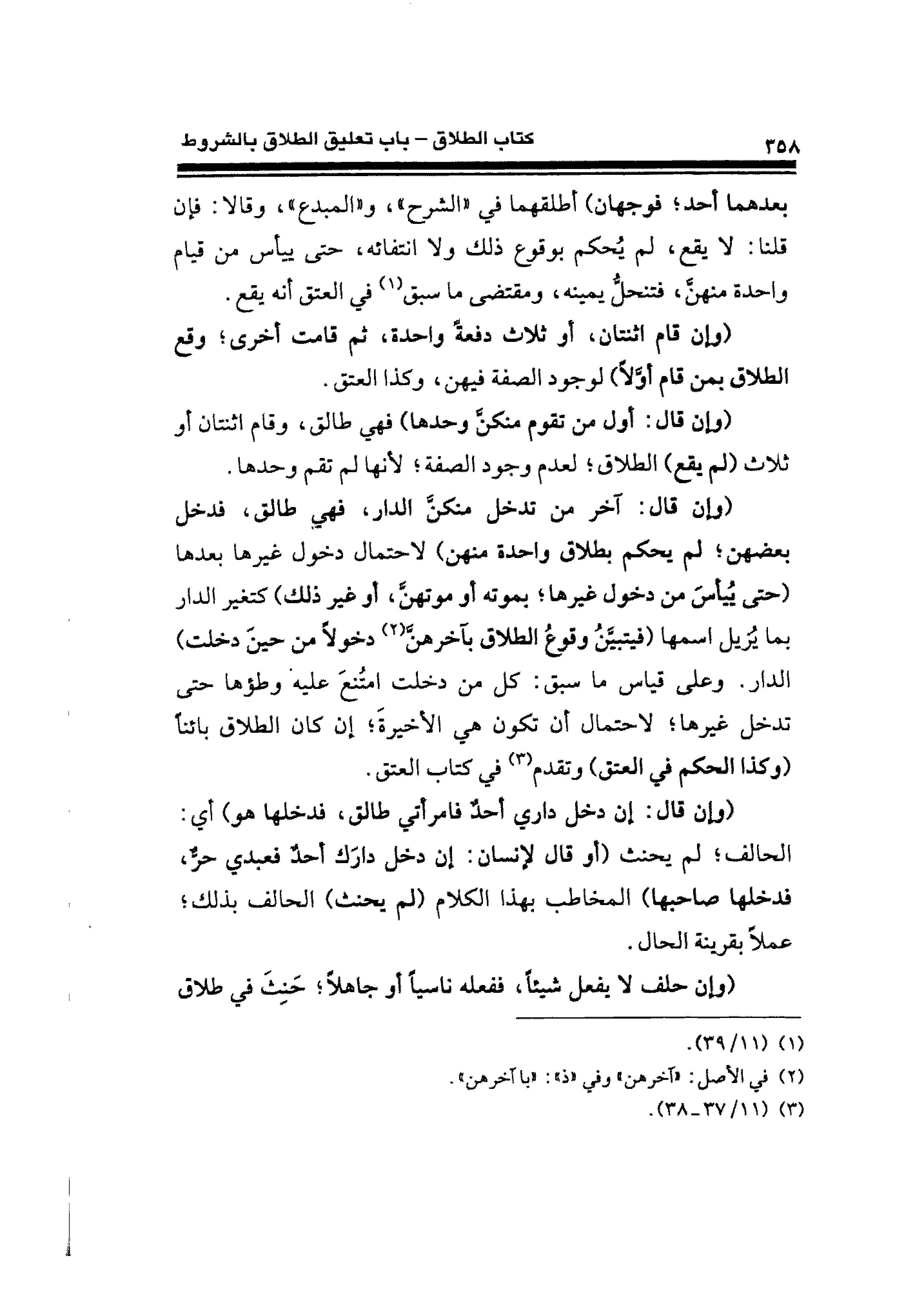 (وإن قال: آخر من تدخل منكنَّ الدار، فهي طالق، فدخل بعضهن؛ لم يحكم بطلاق واحدة منهن) لاحتمال دخول غيرها بعدها (حتى يُيأسَ من دخول غيرها؛ بموته أو موتهنَّ، أو غير ذلك) كتغير الدار بما يُزيل اسمها (فيتبيَّنُ وقوعُ الطلاق بآخرهنَّ (¬٢) دخولًا من حينَ دخلت) الدار. وعلى قياس ما سبق: كل من دخلت امتُنعَ عليه وطؤها حتى تدخل غيرها؛ لاحتمال أن تكون هي الأخيرةَ؛ إن كان الطلاق بائنًا (وكذا الحكم في العتق) وتقدم (¬٣) في كتاب العتق.
