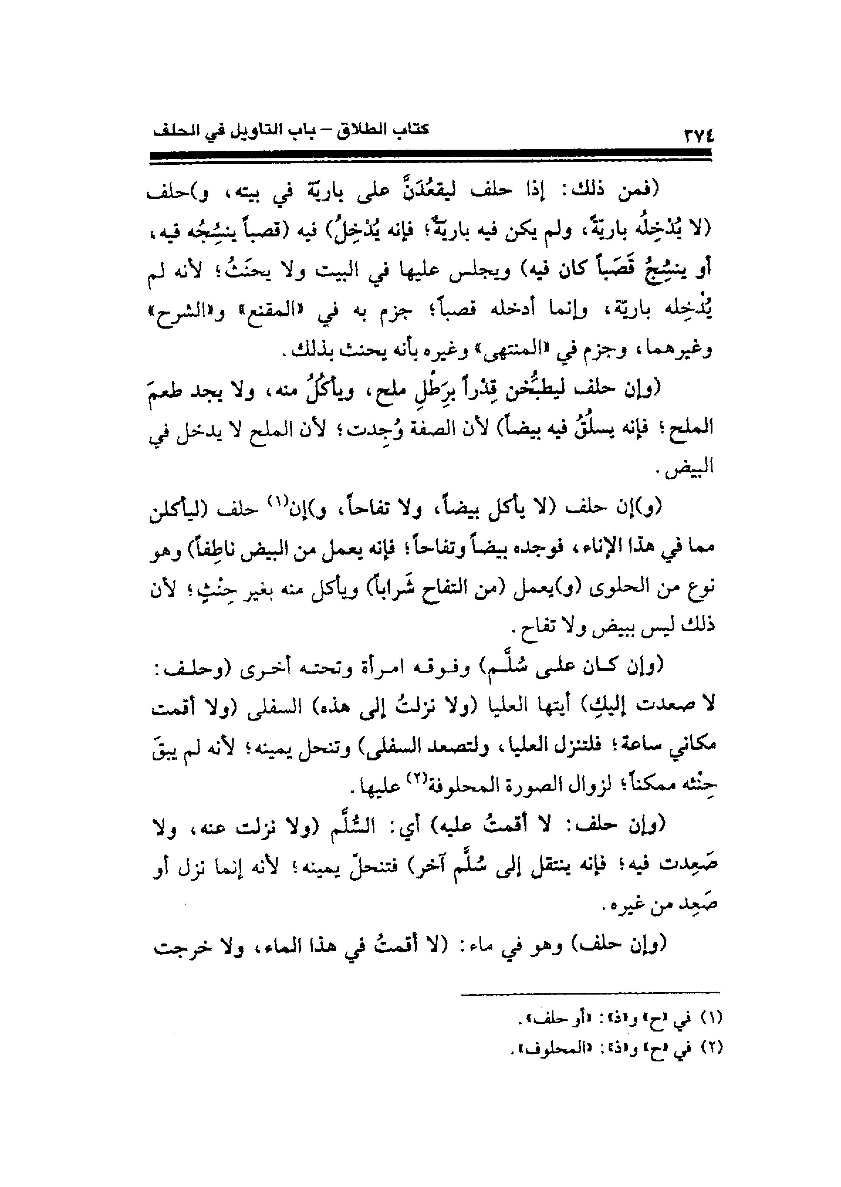 (وإن حلف: لا أقمتُ عليه) أي: السُّلَّم (ولا نزلت عنه، ولا صَعِدت فيه؛ فإنه ينتقل إلى سُلَّم آخر) فتنحل يمينه؛ لأنه إنما نزل أو صَعِد من غيره.