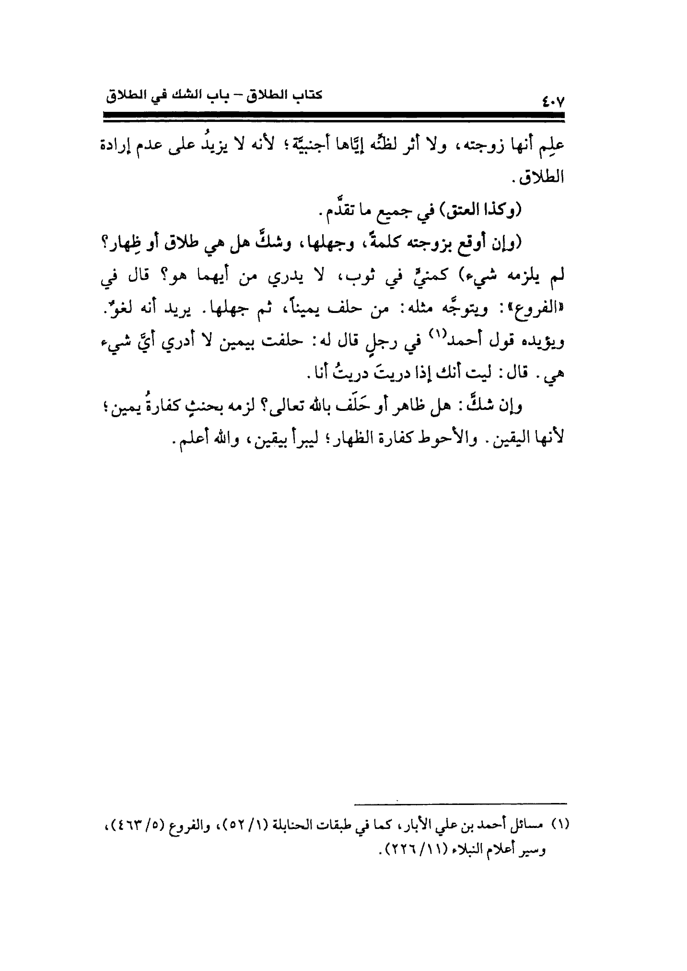 (¬١) مسائل أحمد بن علي الأبار، كما في طبقات الحنابلة (١/ ٥٢)، والفروع (٥/ ٤٦٣)، وسير أعلام النبلاء (١١/ ٢٢٦).