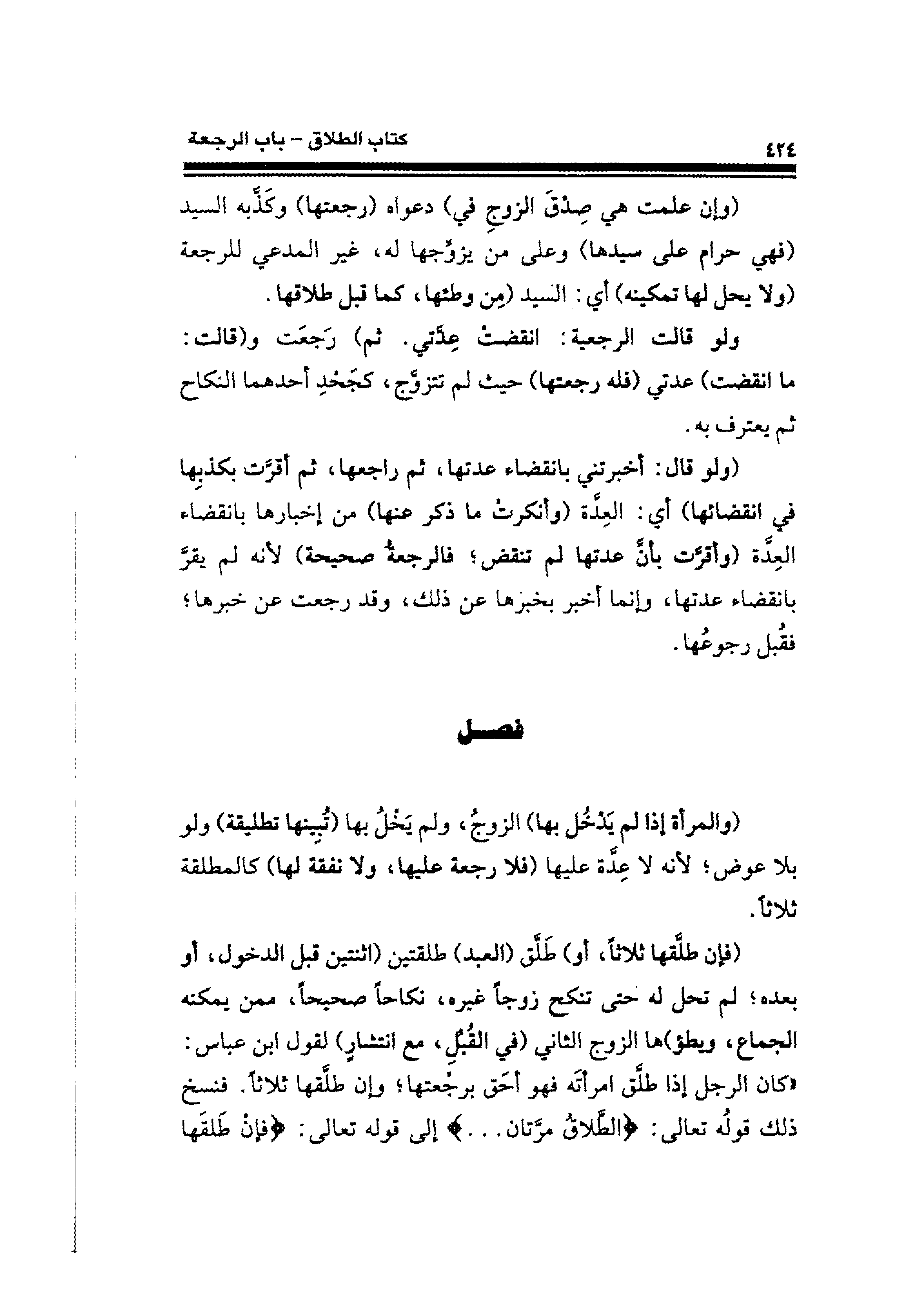 (ولو قال: أخبرتني بانقضاء عدتها، ثم راجعها، ثم أقرَّت بكذبِها في انقضائها) أي: العِدَّة (وأنكرت ما ذكر عنها) من إخبارها بانقضاء العِدَّة (وأقرَّت بأنَّ عدتها لم تنقض؛ فالرجعةُ صحيحة) لأنه لم يقرَّ بانقضاء عدتها، وإنما أخبر بخبرها عن ذلك، وقد رجعت عن خبرها؛ فقُبل رجوعُها.