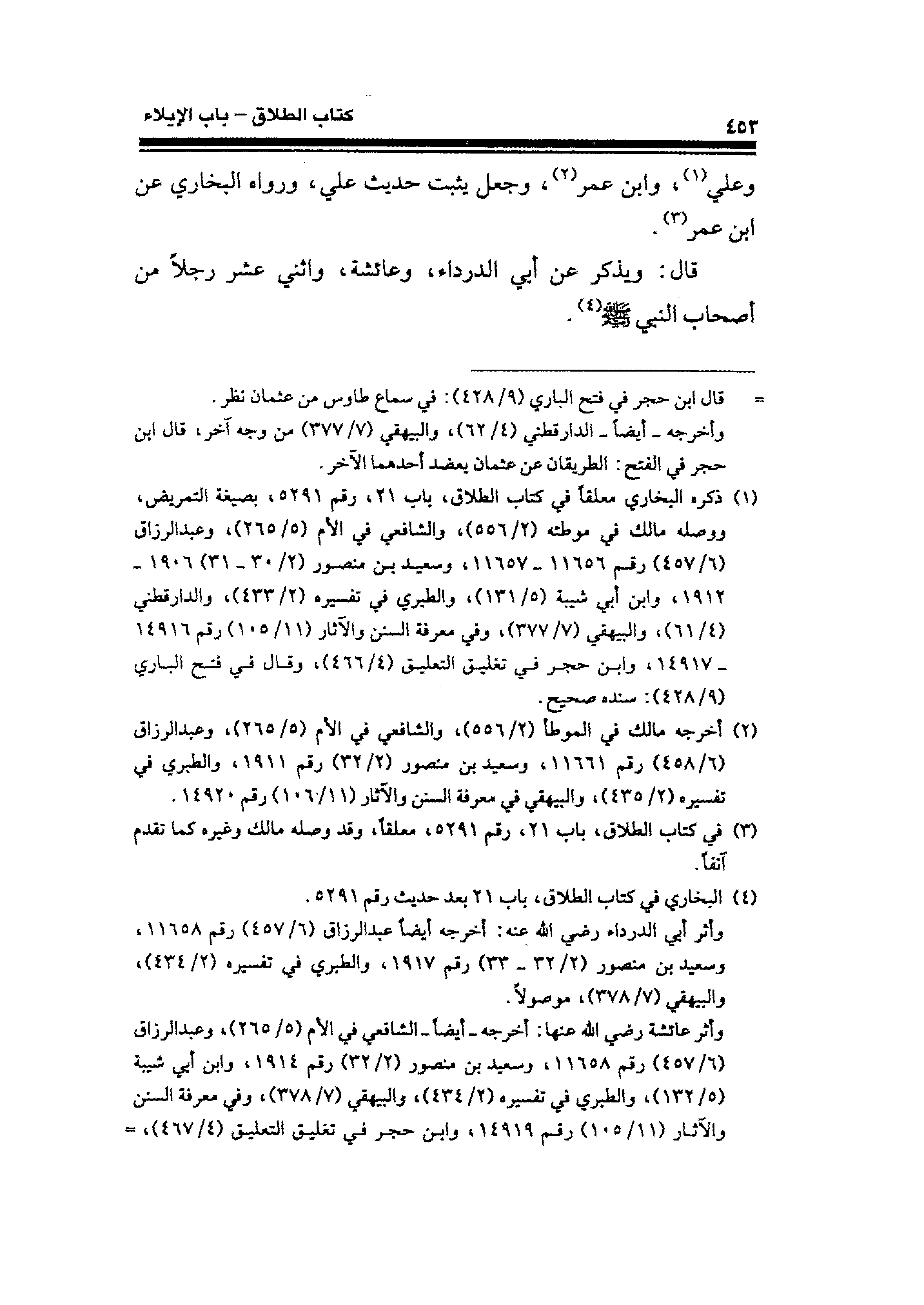 (¬٤) البخاري في كتاب الطلاق، باب ٢١ بعد حديث رقم ٥٢٩١.