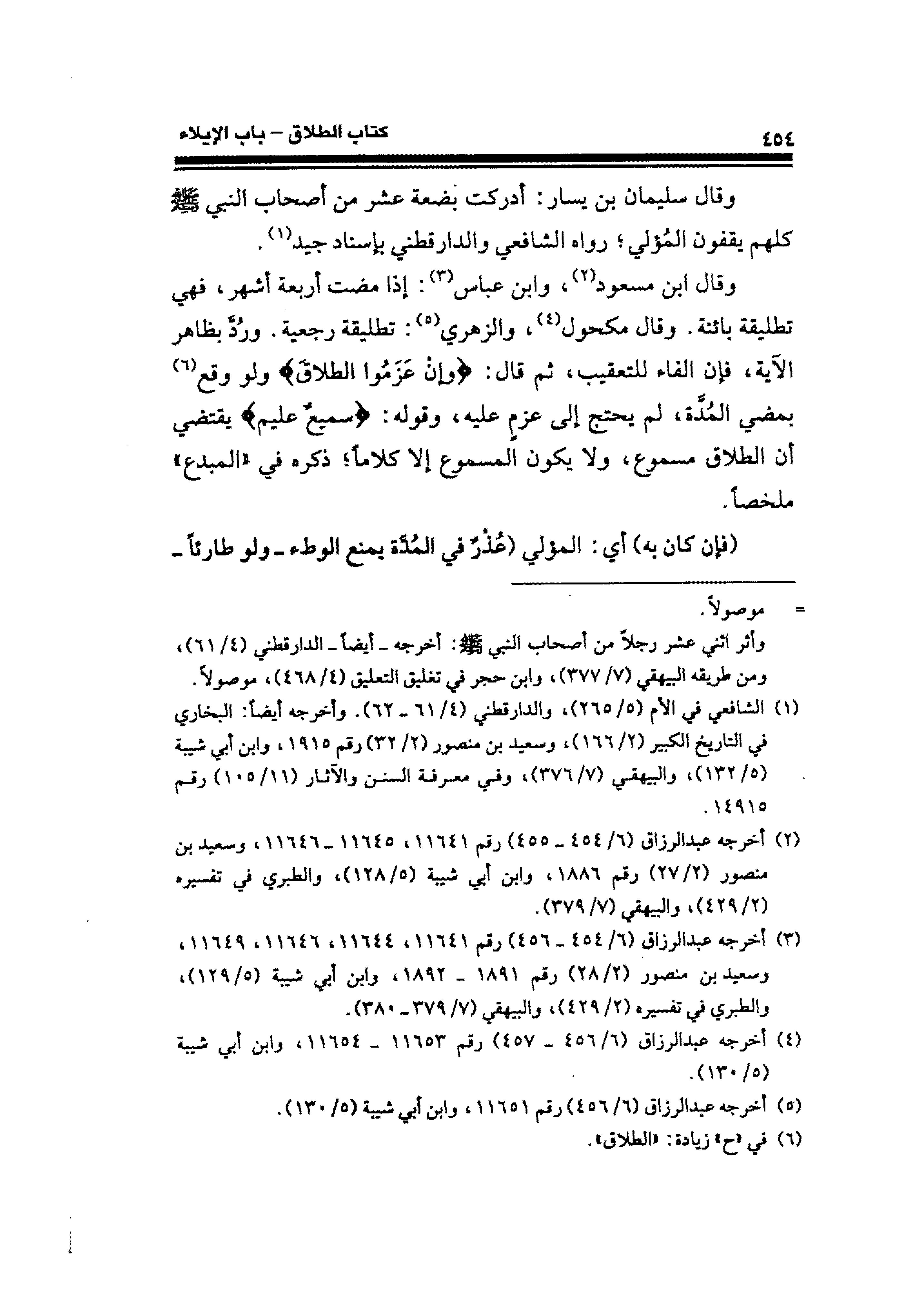 وقال سليمان بن يسار: أدركت بضعة عشر عن أصحاب النبي - صلى الله عليه وسلم - كلهم يقفون المُؤلي؛ رواه الشافعي والدارقطني بإسناد جيد (¬١).