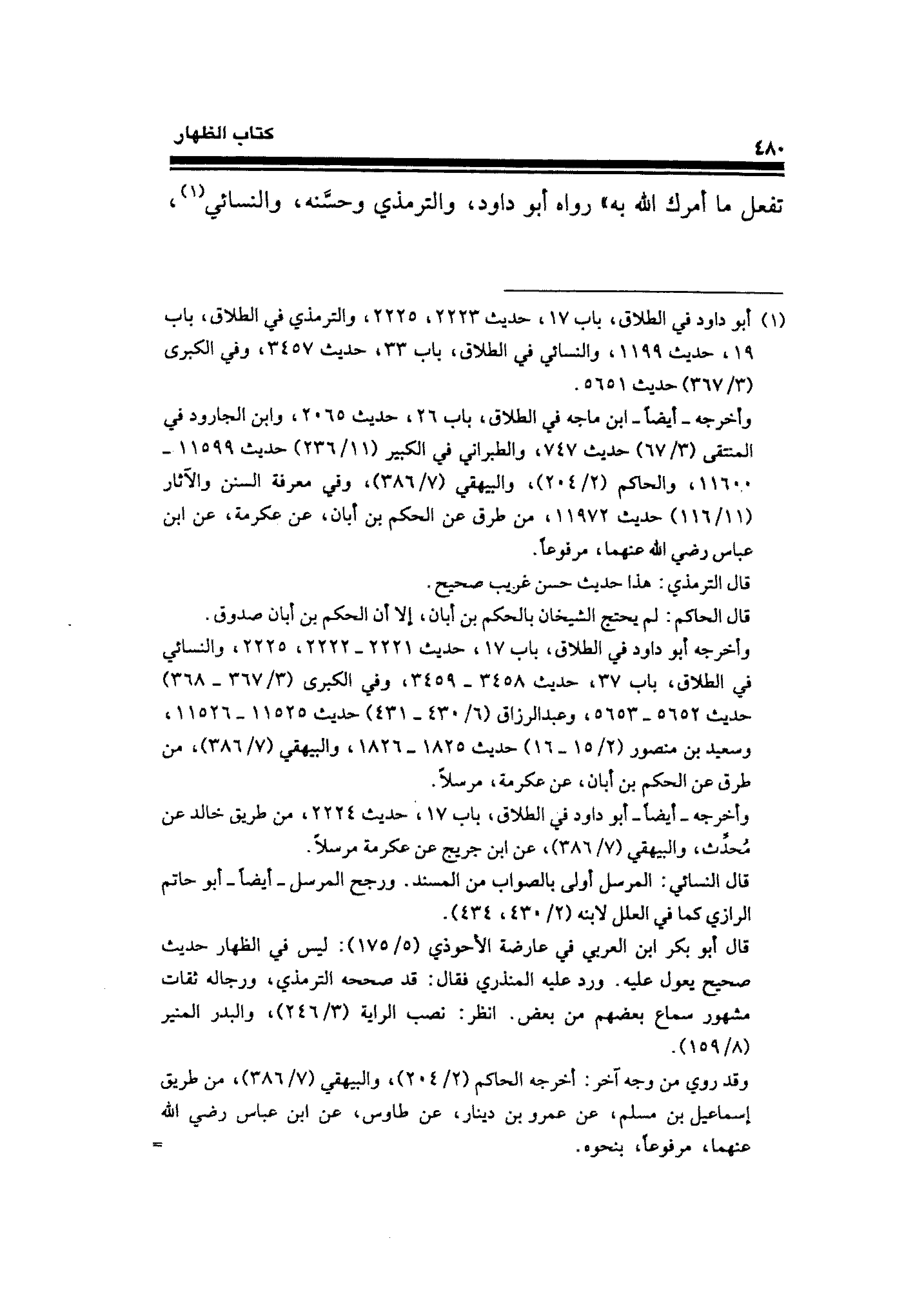(¬١) أبو داود في الطلاق، باب ١٧، حديث ٢٢٢٣، ٢٢٢٥، والترمذي في الطلاق، باب ١٩، حديث ١١٩٩، والنسائي في الطلاق، باب ٣٣، حديث ٣٤٥٧، وفي الكبرى (٣/ ٣٦٧) حديث ٥٦٥١.