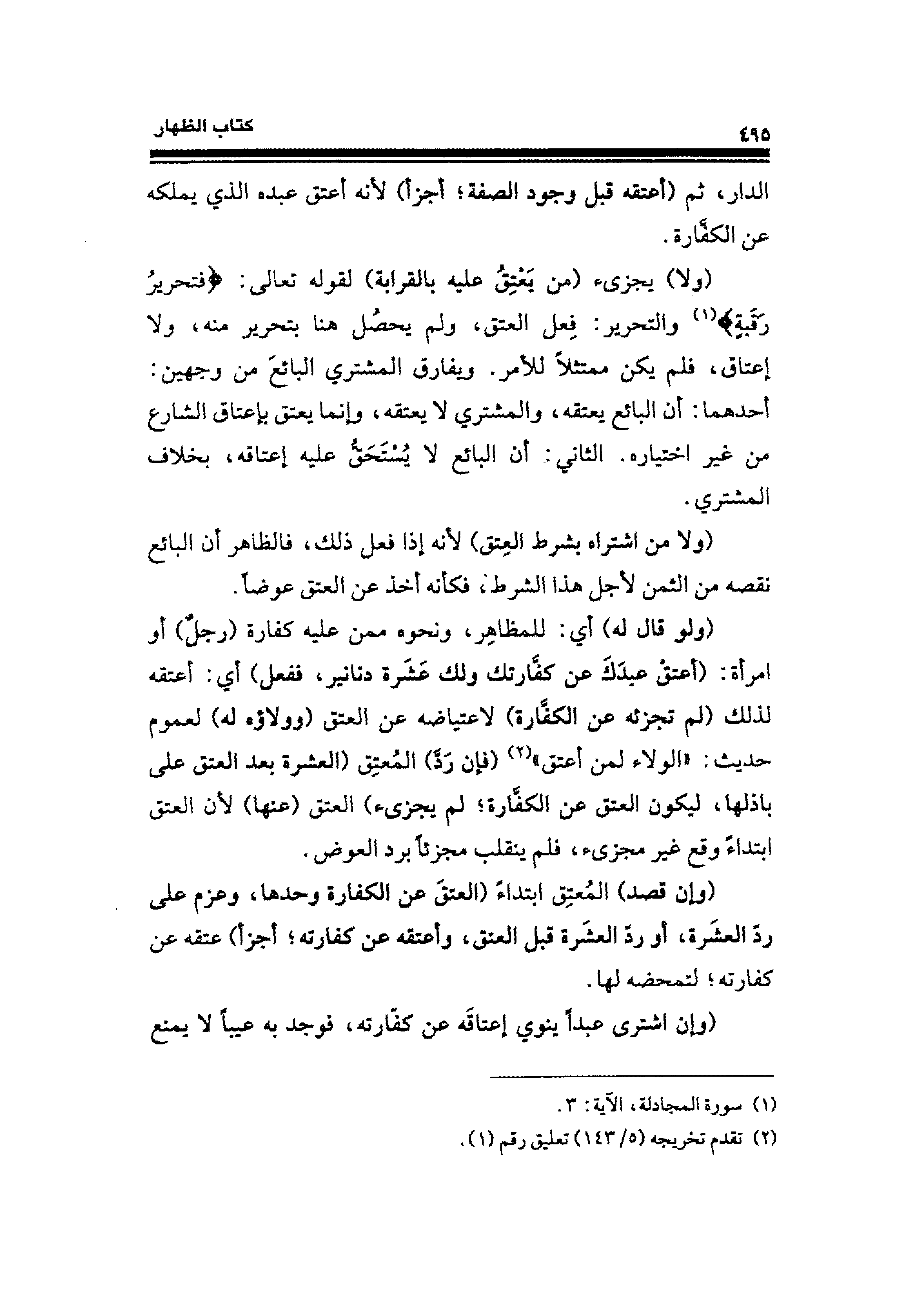 الدار، ثم (أعتقه قبل وجود الصفة؛ أجزأ) لأنه أعتق عبده الذي يملكه عن الكفَّارة.